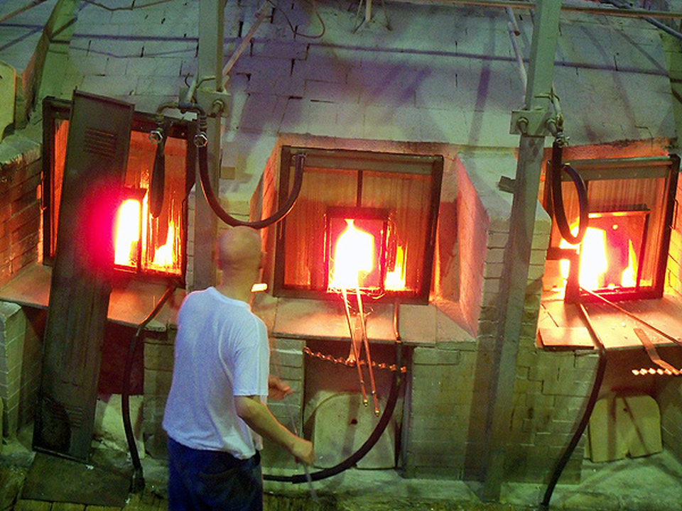 W środę natomiast mieliśmy okazję zwiedzić fabrykę szkła ozdobnego w Harrachov. Fabryka szkła to właściwie kompleks składający się z fabryki szkła, muzeum szkła, browar i restauracji. Fabryka szkła działa na zasadzie manufaktury sprzed lat. Zatrudnia 40 pracowników, którzy produkują szkła ozdobne, charakterystyczne, a ich produkcja w 90% jest eksportowana, tylko 10% zostaje w Czechach. W piecach, obok których przechodziliśmy panuje temperatura 200 st. C. Z pracownikami wytapiającymi szkło mogliśmy porozmawiać, jednak musieliśmy uważać na taśmy z gotowymi kieliszkami i pucharami. Następnie oglądaliśmy pracę szlifierów, którzy z normalnego kieliszka potrafili zrobić dzieło sztuki.