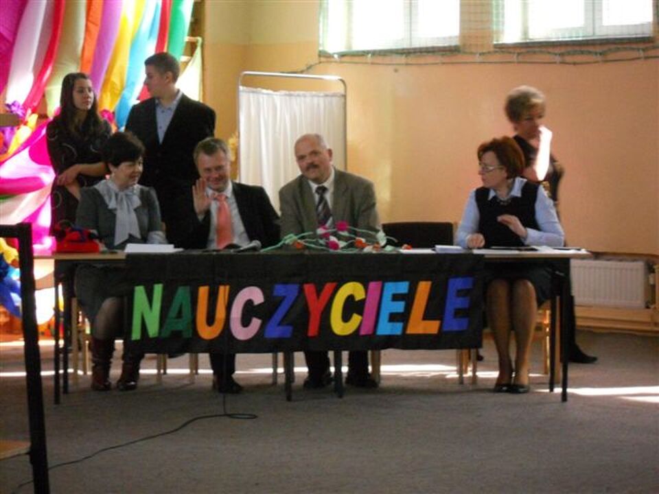 W konkursie wzięły udział dwie drużyny: Uczniowie - Nauczyciele. Współzawodnictwo było zacięte. Nauczyciele zaskoczyli wszystkich nie tylko swą wiedzą i elokwencją, ale również ciekawą charakteryzacją, strojem i hasłami: