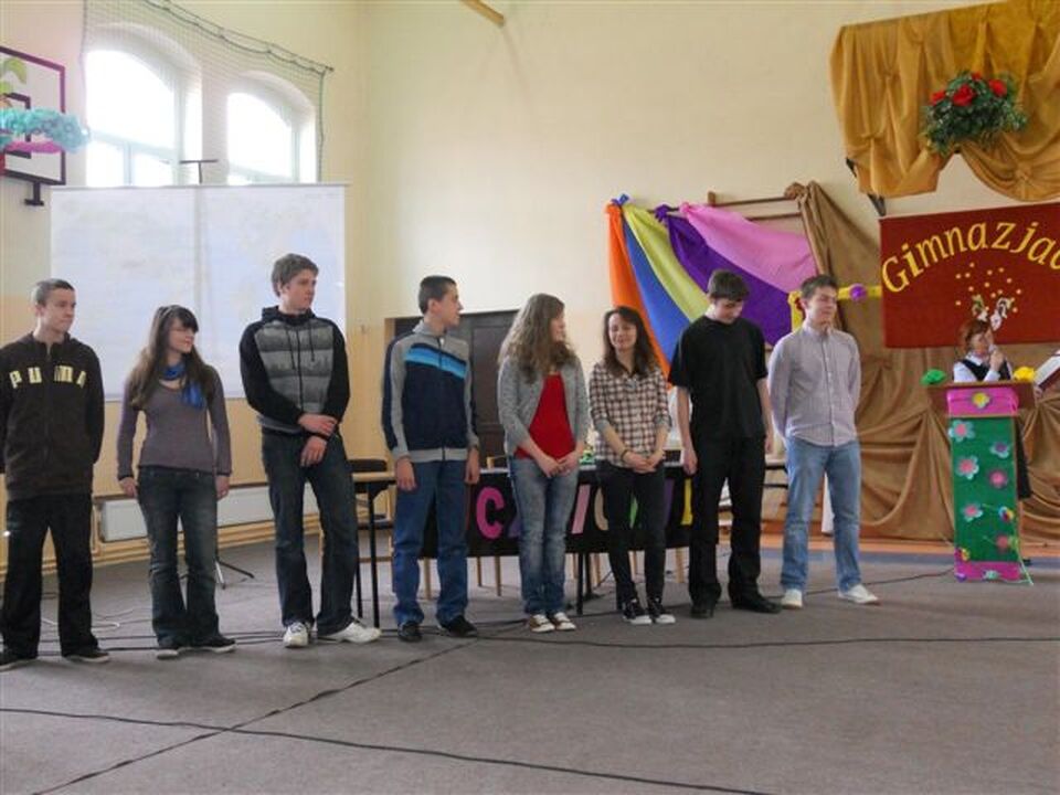 Po zakończeniu tej części apelu aktyw Samorządu Uczniowskiego, pod nadzorem opiekuna S.U. Pani Krystyny Leśniewskiej, zorganizował „Gimnazjadę" - zabawę opartą na zasadach znanego programu telewizyjnego emitowanego na kanale TVP 2 - „Familiady".