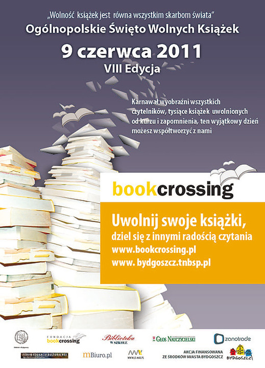Lubisz czytać, a nie zawsze masz gdzie? Lubisz czytać, ale nie masz pieniędzy na nowe książki? Otóż w dobie internetu nie łatwo jest znaleźć szukaną pozycję, a tym bardziej w małym mieście. Z tej właśnie okazji 9 czerwca 2011, w ramach VIII już edycji "uwalniania książek lub krążenia książek" (z ang.'bookcrossing') Biblioteka Miejska im. Agnieszki Osieckiej w Darłowie zachęca do czytania wszystkich - bez wyjątku i bez ograniczeń.