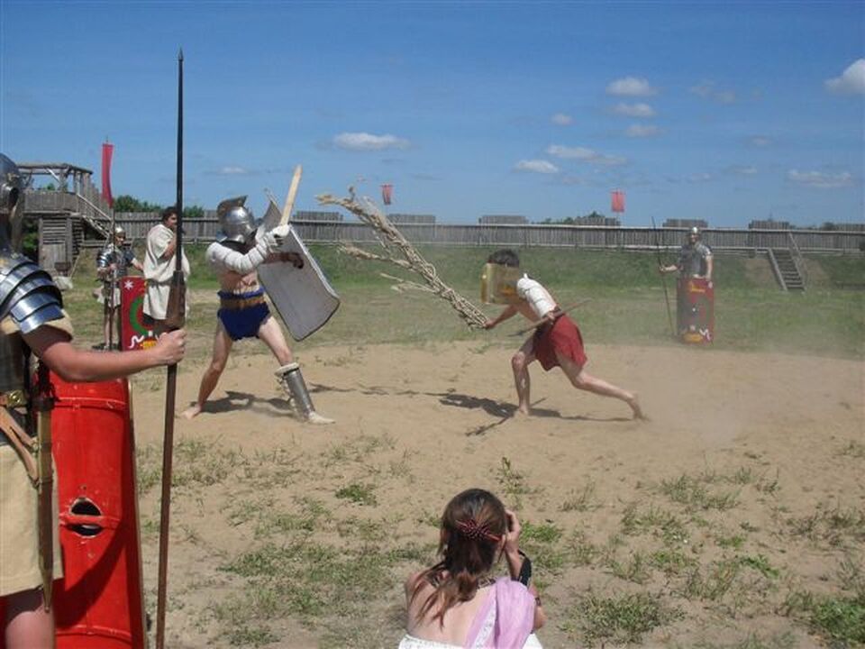 3 czerwca klasy 1d, 2a oraz 2b uczestniczyły w Antycznym Dniu Dziecka, który odbył się w forcie rzymskim w Małoszycach. Młodzież przeżyła niezapomnianą i prawdziwą lekcję historii antycznej. Grupa rekonstrukcyjna z Lublina pokazała zwiedzającym m.in. musztrę rzymskich legionistów i greckich hoplitów. Uczniowie zadawali wiele pytań dotyczących elementów uzbrojenia, sztuki walki oraz rodzajów broni. Organizatorzy zadbali o różnorodność pokazów i na stanowiskach można było zagrać w starożytne gry, pisać na papirusie lub tabliczkach, skosztować przysmaków śródziemnomorskiej kuchni, wypróbować starożytnych kosmetyków czy obejrzeć antyczną komedię. Młodzież także brała udział w grach zręcznościowych związanych z życiem rzymskich legionistów- strzelała z łuku, walczyła na równoważni i biła się na miecze. Wiele radości sprawiły uczniom przejażdżki rzymskim rydwanem oraz w siodle. Punktem kulminacyjnym był pokaz walk gladiatorów z użyciem sieci i broni.