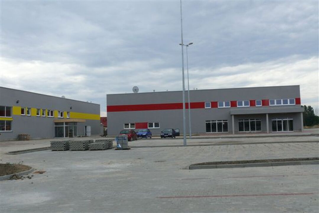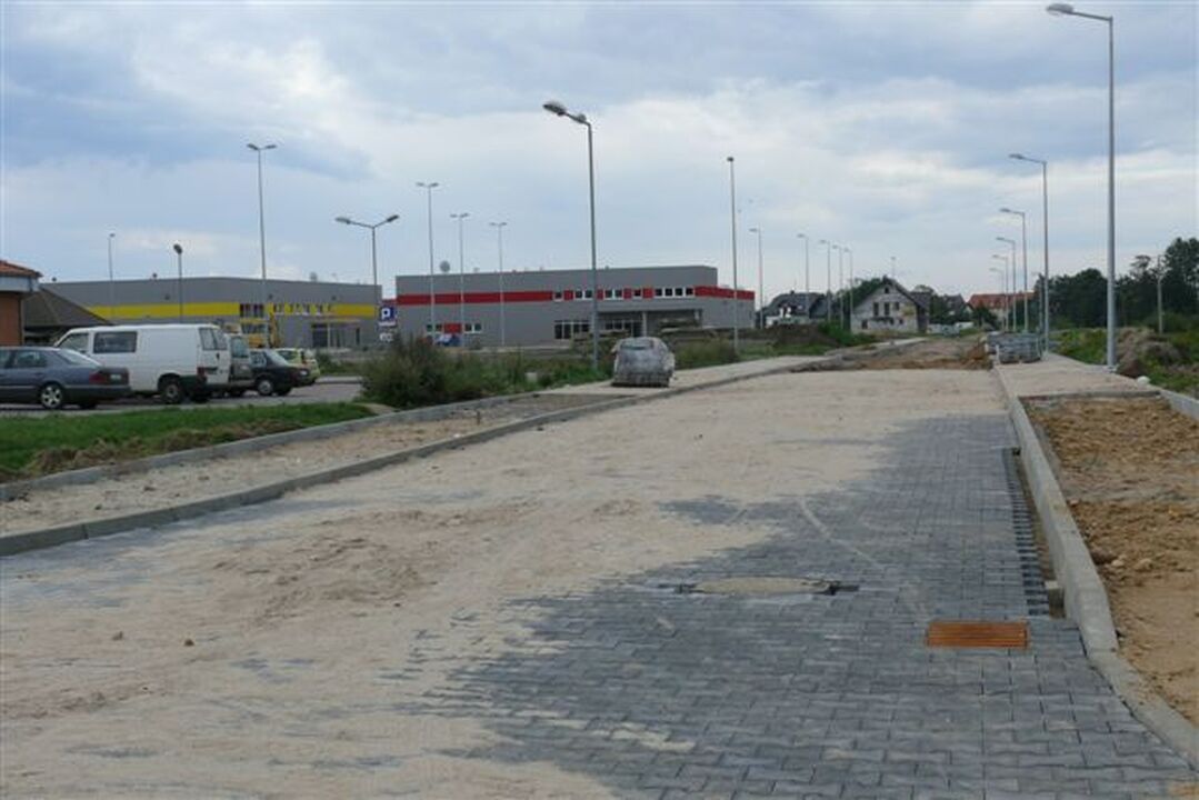 Drugi obiekt z czerwonym paskiem na elewacji to supermarket Intermarche. Budynek jest gotowy i ustawiane są wewnątrz regały. Do rozpoczęcia działalności obu wielkopowierzchniowych sklepów potrzebne jest zakończenie budowy drogi i kanalizacji sanitarnej.