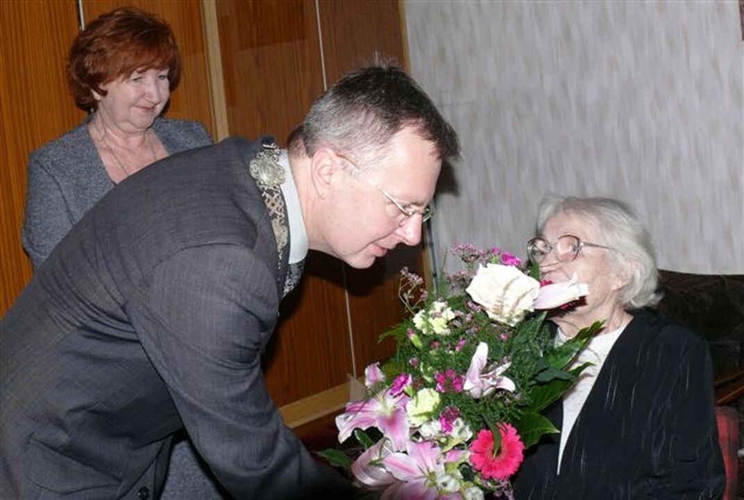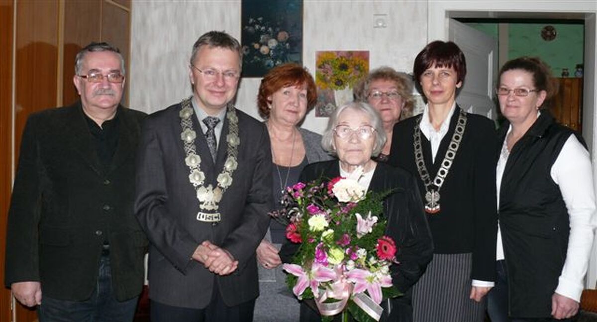 Wizytę stulatce zamieszkałej przy ul. Morskiej złożył Arkadiusz Klimowicz - burmistrz miasta Darłowo razem z kierownikiem USC. Włodarz miasta wręczył jubilatce list gratulacyjny od premiera RP Donalda Tuska, plakietę grawertonową od samorządu z okolicznościowymi życzeniami dalszych lat życia w zdrowiu i pomyślności oraz kwiaty. Stulatka jest w dobrej formie i sama chodzi do kościoła. Zapytana o receptę na dobre samopoczucie powiedziała, aby mieć zdrowie trzeba dużo ruszać się i nie stresować. W Darłowie znana jest ze znakomitych wyrobów ciast i tortów.