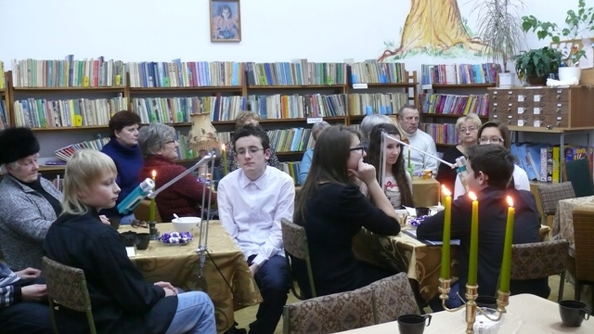 W korytarzu przed wejściem do bibliotecznej sali wisiały białe karty zapisane wierszami poetki. Prawie każdy z uczestników wieczoru wybrał sobie jeden, a niektórzy nawet kilka wierszy Wisławy Szymborskiej, które potem czytano przy świecach. W ten sposób poznaliśmy kilkadziesiąt wierszy i limeryków genialnej poetki. Wielu uczestników wieczornicy dodawało celne komentarze o życiu i twórczości nie tylko poetyckiej, Damy Orderu Orła Białego.
