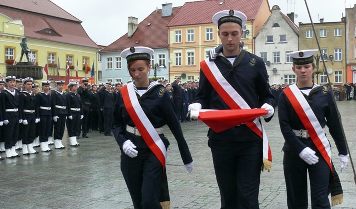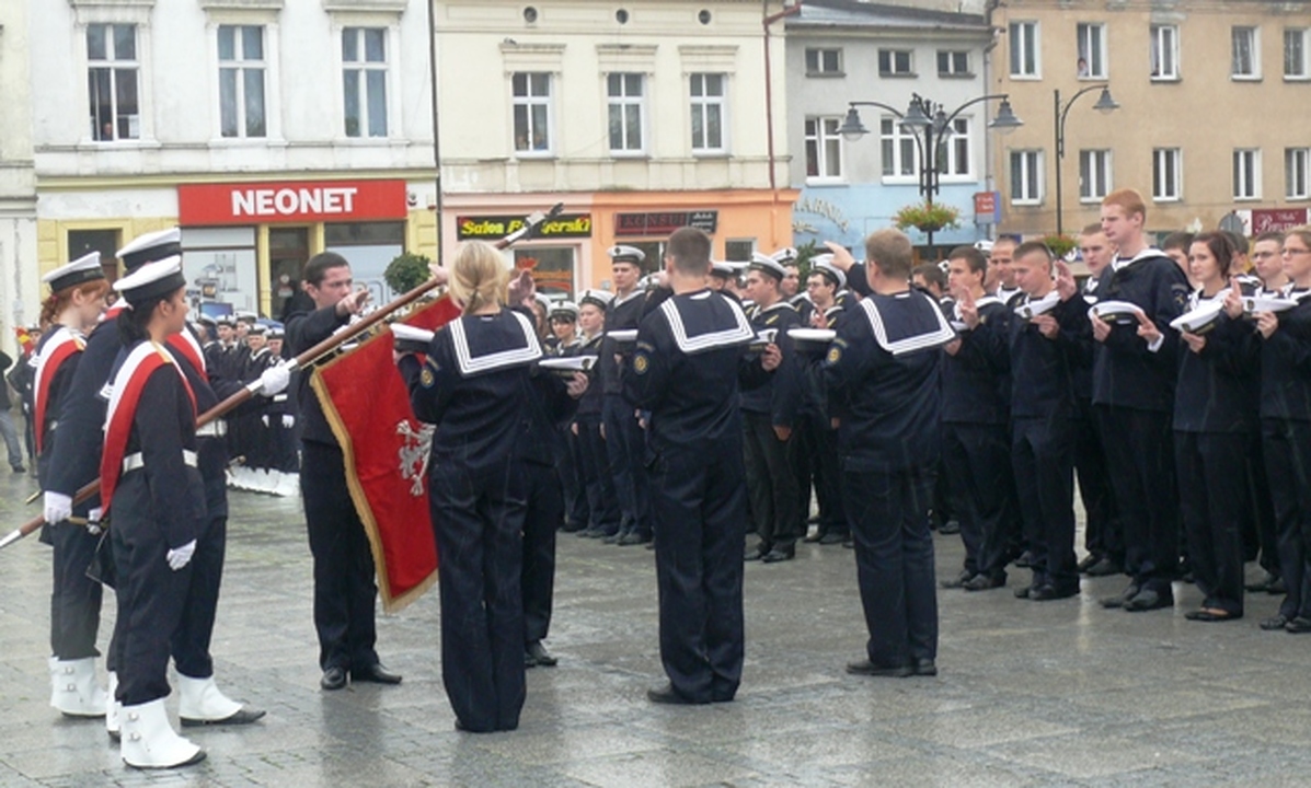 W obecności rodziców oraz władz samorządowych miasta i powiatu sławieńskiego 6 października na rynku przed darłowskim ratuszem odbyło się uroczyste ślubowanie uczniów klas pierwszych Zespołu Szkół Morskich.