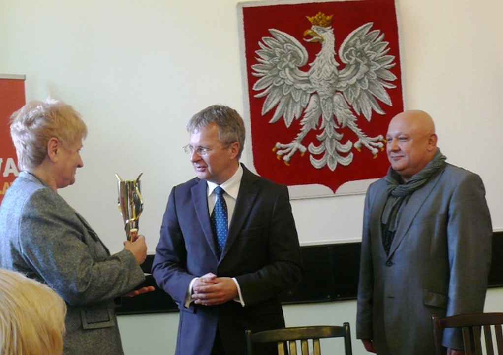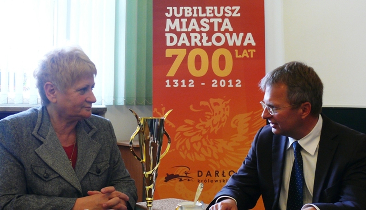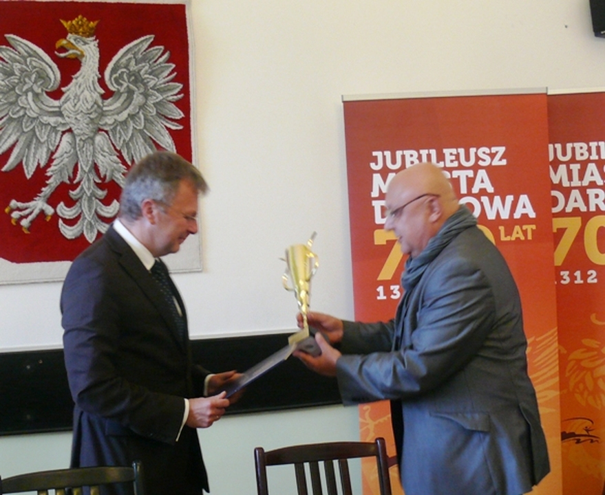 Z tej okazji senator RP Piotr Zientarski wręczył w ratuszu Arkadiuszowi Klimowiczowi – burmistrzowi miasta Darłowo puchar z tytułem „Darłowski samorząd przyjazny edukacji osób starszych i integracji międzypokoleniowej”. Natomiast list gratulacyjny otrzymała Danuta Puczyńska –prezes Polskiego Związku Emerytów Rencistów Inwalidów –koło w Darłowie i jednocześnie przewodniczącej Stowarzyszenia „Otwarte Drzwi za realizację projektu „Akademia Sztuki”. Burmistrz miasta przekazał otrzymany od Senatu RP puchar Danucie Puczyńskiej i realizatorom konkursu.