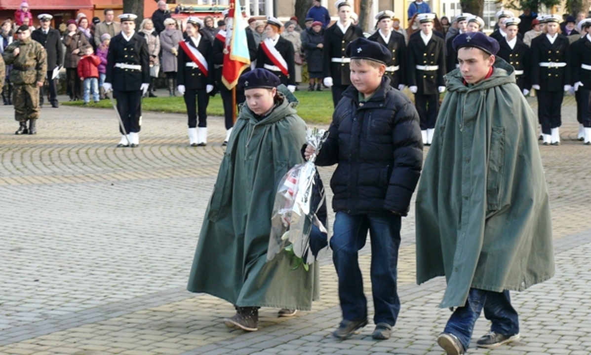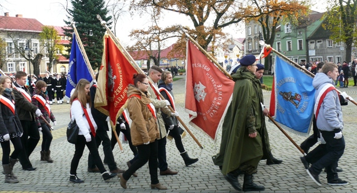 W Mszy św. udział wzięły: poczty sztandarowe, Kompania Honorowa Marynarki Wojennej władze miasta, Darłowska Orkiestra Dęta i mieszkańcy. Po mszy nastąpił przemarsz główną ulica miasta na plac Marszałka Józefa Piłsudskiego. Przed Pomnikiem Tysiąclecia Państwa Polskiego przy zapalonym zniczu zaciągnęli warty honorowe Straż Graniczna, Uczniowie ZSM i harcerze. Arkadiusz Sip serdecznie powitał przybyłych na uroczystość: Poczty Sztandarowe, Kompanie Honorowe Marynarki Wojennej i Zespołu Szkół Morskich, starostę powiatu sławieńskiego Wojciecha Wiśniowskiego, burmistrza miasta Darłowo Arkadiusza Klimowicza, radną Sejmiku Wojewódzkiego Magdalenę Gąsecką, przewodniczącego Rady Miejskiej Zbigniewa Grosza i radnych, wicewójta gminy Darłowo Radosława Głażewskiego, proboszcza parafii MB. Częstochowskiej o Stanisława Piankowskiego, przedstawicieli służb mundurowych Straży Granicznej, Policji, Straży Pożarnej, Straży Miejskiej. Po hymnie państwowym do zgromadzonych mieszkańców Ziemi Darłowskiej przemówił starosta Powiatu Sławieńskiego Wojciech Wiśniowski. Przypomniał on trudną drogę do odzyskania niepodległości po 123 latach zaborów. Dla uczczenia Wolnej Polski Kompania Honorowa Marynarki Wojennej oddała salwę honorową. W takt rytmu werbla złożyli biało czerwone wiązanki kwiatów: władze samorządowe powiatu, miasta i gminy Darłowo, radni, przedstawiciele partii politycznych i organizacji pozarządowych, delegacje służb mundurowych, zakładów pracy, placówek oświatowych i inni. W godzinach popołudniowych na miejskim stadionie odbył się Niepodległościowy Turniej Piłkarski o puchary burmistrza miasta Arkadiusza Klimowicza, przewodniczącego Rady Miejskiej Zbigniewa Grosza, prezesów Darłovii i Firmy Darpol. Po wyrównanej grze rzutami karnymi zwyciężyła drużyna Straży Pożarnej przed Darpolem – Barzowice i Dałovią. Czwarte miejsce zdobył team Jednostki Wojskowej.