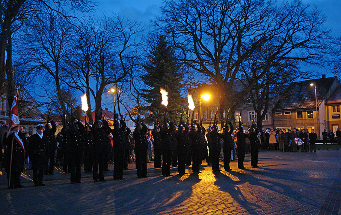 Mieszkańcy miasta zamanifestowali swoje uczucia patriotyczne zarówno w Kościele Mariackim jak i na zmodernizowanym placu im. Marszałka Józefa Piłsudskiego. To najważniejsze Narodowe Święto obchodzone jest na pamiątkę odzyskania niepodległości w 1918 r. Uroczystości rozpoczęły się w Kościele Mariackim Mszą Świętą w intencji Ojczyzny, celebrowaną przez kapelana garnizonu Darłowo kmdr. ppor. Ojca Jana Zapotocznego i proboszcza parafii M.B. Częstochowskiej Ojca Stanisława Piankowskiego. Modlono się z udziałem pocztów sztandarowych, Kompanii Honorowej Marynarki Wojennej, władz miasta, kombatantów, harcerzy oraz licznie zgromadzonych mieszkańców. Następnie przy dźwiękach melodii legionowych odegranych przez orkiestrę dętą ze Sławna przemaszerowano w kolumnie spod kościoła NMP na Plac Marszałka Józefa Piłsudskiego. Tam pod pomnikiem Tysiąclecia Państwa Polskiego przy zapalonym zniczu licznie zebrani mieszkańcy wysłuchali Hymnu Narodowego. Okolicznościowe przemówienie wygłosił burmistrz miasta Arkadiusz Klimowicz. Burmistrz przypomniał znaczenie daty 11 listopada i mówił o wynikającym z tego tytułu patriotyzmie. Po trzech rozbiorach, po 123 latach niewoli i powstańczych zrywach wolnościowych dzięki ogromnemu wysiłkowi narodu odrodziło się niepodległe Państwo Polskie. Nadeszła upragniona wolność. To najważniejsze święto dla Polaków ustanowione w 1937 roku zostało zniesione w 1945 r. przez komunistyczne władze PRL i zakazano jego obchodów. Jako święto państwowe zostało przywrócone uchwałą Sejmu RP w 1989 roku. Znaczenie tego epokowego wydarzenia upamiętniło wielu naszych poetów, a ich strofy przypomnieli uczniowie Miejskiego Gimnazjum.