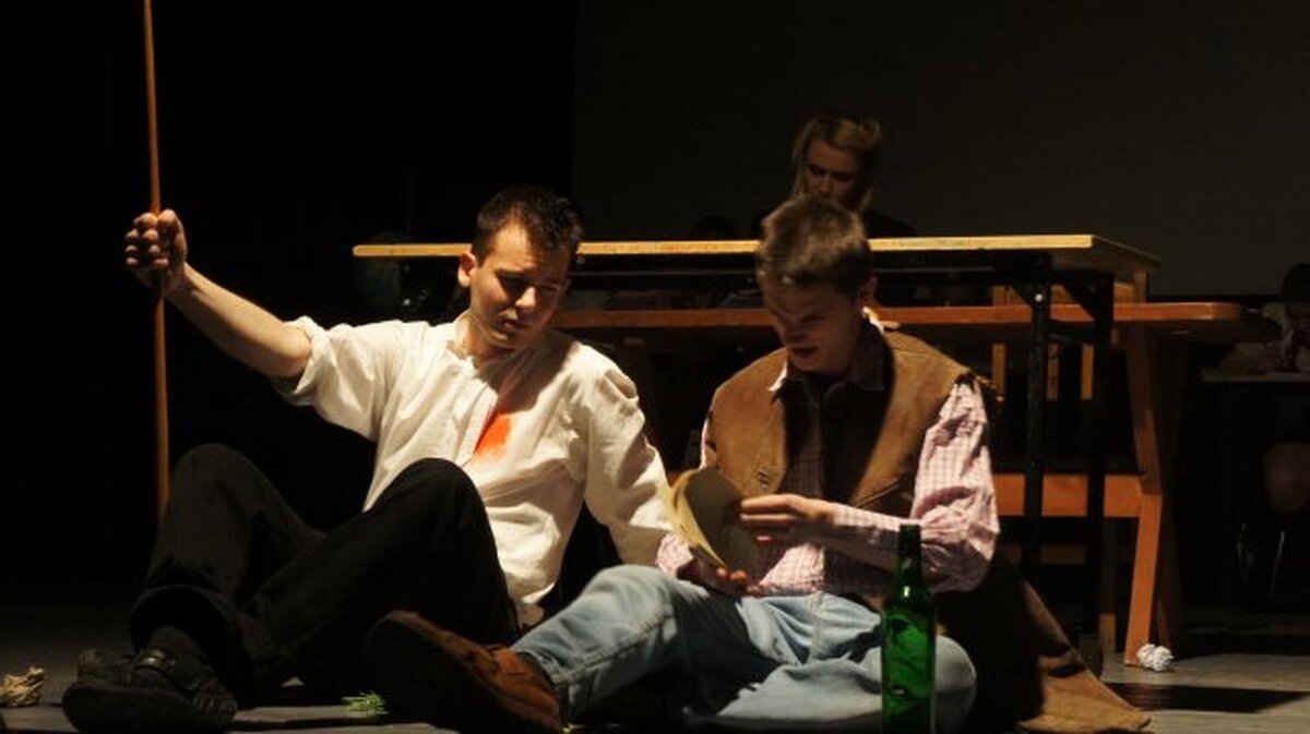- Praca nad tym spektaklem wymagała wyważonego smaku. Temat jest mocny, a jego ujęcie - kontrowersyjne - mówił Paweł Kozłowski, reżyser. - Z tego względu inscenizacja jest bardziej poetycka, niż realistyczna, operuje sugestią, nie konkretem. Scenografia i choreografia bazują na jednym pomyśle, aby na scenie przedmioty grały na równi z ludźmi. Dzięki temu osiągnęliśmy efekt światów równoległych - maleńkiej szkolnej klasy, która zamienia się nagle w ogarniętą wojną Polskę, a może nie tylko Polskę - dodaje.