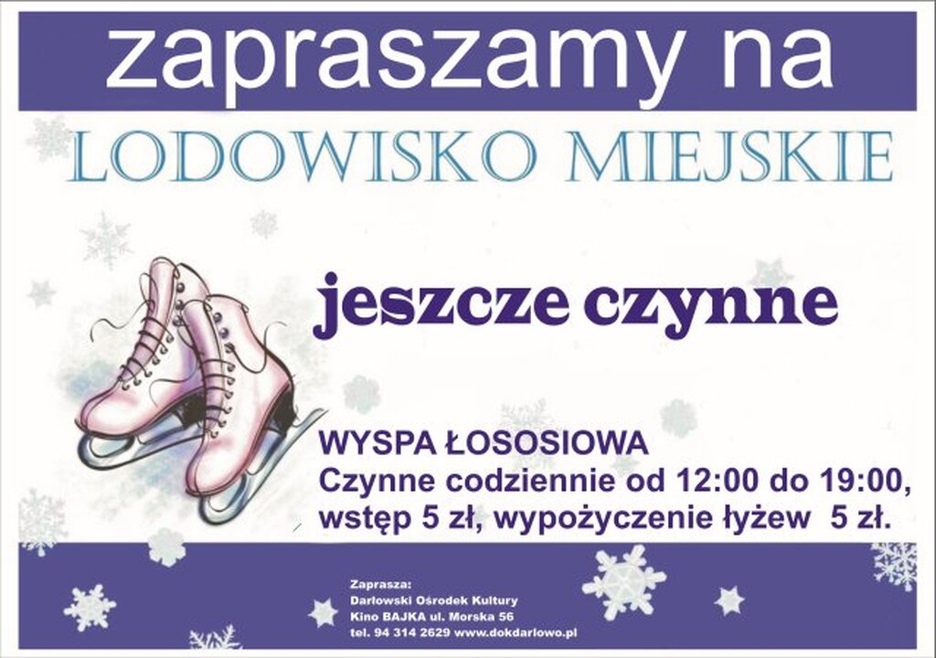 - Rozpoczęliśmy już rozmrażanie lodowiska, ale ze względu na to, że zima do nas wróciła, postanowiliśmy jeszcze przedłużyć sezon. Jazda na łyżwach będzie możliwa do czasu kiedy pozwolą na to warunki atmosferyczne – wyjaśnia Arkadiusz Sip, Dyrektor Darłowskiego Ośrodka Kultury. - Liczymy, że ostatnie zimowe dni spowodują, że na lodowisko przybędzie jeszcze więcej darłowskich łyżwiarzy - dodaje.
