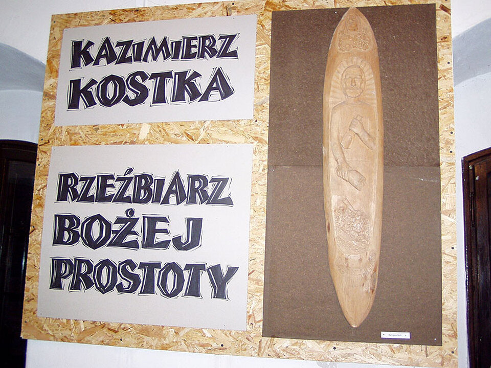 We wtorek 20 listopada br. w galerii wystawowej Zamku Książąt Pomorskich w Darłowie otwarto ekspozycję 74 rzeźb pod tytułem „Kazimierz Kostka – rzeźbiarz bożej prostoty”. Kazimierz urodził się w sercu Kaszub w Wejherowie w 1945 roku. Rzeźbieniem głównie w drewnie zainteresował się już w latach szkolnych. Pierwsze wystawy miał w latach siedemdziesiątych XX wieku. Najważniejsze miejsce w jego twórczości zajmuje tematyka religijna. Wyrzeźbił kilkuset świętych: Floriana, Huberta, Nepomucena, Krzysztofa, Antoniego, Wojciecha, Jerzego, Klarę, Annę Samotrzeć, Weronikę i innych. Rzeźbi figury: Chrystusa, Matki Boskiej, Madonny z dzieciątkiem, Pietę, krucyfiksy, szopki, Anioły, Ostatnią Wieczerzę, Ucieczka do Egiptu i inne. Część jego twórczości związana jest z morzem i Pomorzem. Dokumentują to takie prace jak np.: Neptun, Rybacy, Matka Boska Rybacka, Matka Boska Swarzewska, kapela kaszubska, Madonna Gwiazda Morza, Świecznik rybacy, Królowa Kaszub, Rybak i inne. W jego pracowni powstało również wiele rzeźb o tematyce patriotycznej jak np.: Orzeł, Piłsudski czy głowy sławnych ludzi. Ostatnio Kostka wyrzeźbił tzw. cykl papieski obejmujący m.in. Ołtarz Papieski i Wizerunki papieskie. Rzeźbi także pastuszków, grajków, , kapele, ciężarowców, autoportrety, Żydów, Wenus, macierzyństwo, konie, zaprzęgi, łodzie itp. W latach siedemdziesiątych mieszkał i tworzył w Jarosławcu. Od 1984 r. mieszka i rzeźbi w Wodnicy koło Ustki. W roku 1999 Kostka otrzymał od arcybiskupa Archidiecezji w Gdańsku zaproszenie do współtworzenia ołtarza papieskiego na hipodromie w Sopocie. Ołtarz zaprojektował prof. Marian Kołodziej. Kazimierz kostka wyrzeźbił dla ołtarza w twardym dębie „Kapelę Kaszubską i 16 postaci w większości ponad naturalnej wielkości. W swoim dorobku ma ponad tysiąc rzeźb w drewnie, rogu, kamieniu, bursztynie. Zdaniem fachowców biegle operuje dłutem nożem i siekierą. Brał udział w kilkudziesięciu wystawach indywidualnych i zbiorowych. Jego prace znajdują się w wielu kościołach, muzeach i zbiorach prywatnych w kraju i zagranicą.LW