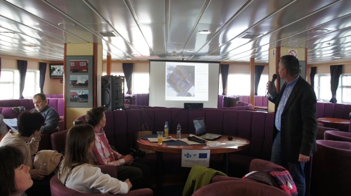 Katamaran można było zwiedzać już od godziny 9:30, natomiast od 11:00 do 12:30 w części konferencyjnej statku, po oficjalnym przywitaniu przez dyrektora ds. Żeglugi KŻP Mirosława Balickiego, swoje prelekcje wygłosili: