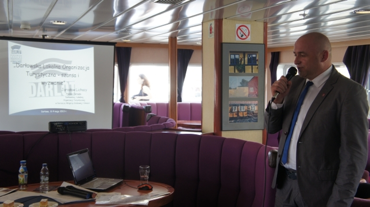 Jarosław Lichacy (prezes Darłowskiej Lokalnej Organizacji Turystycznej) w sposób kompleksowy przedstawił organizację DARLOTu, jej główne cele, zamierzenia, plany działania i dotychczasowe osiągnięcia, w tym między innymi udział w wielu targach turystycznych.