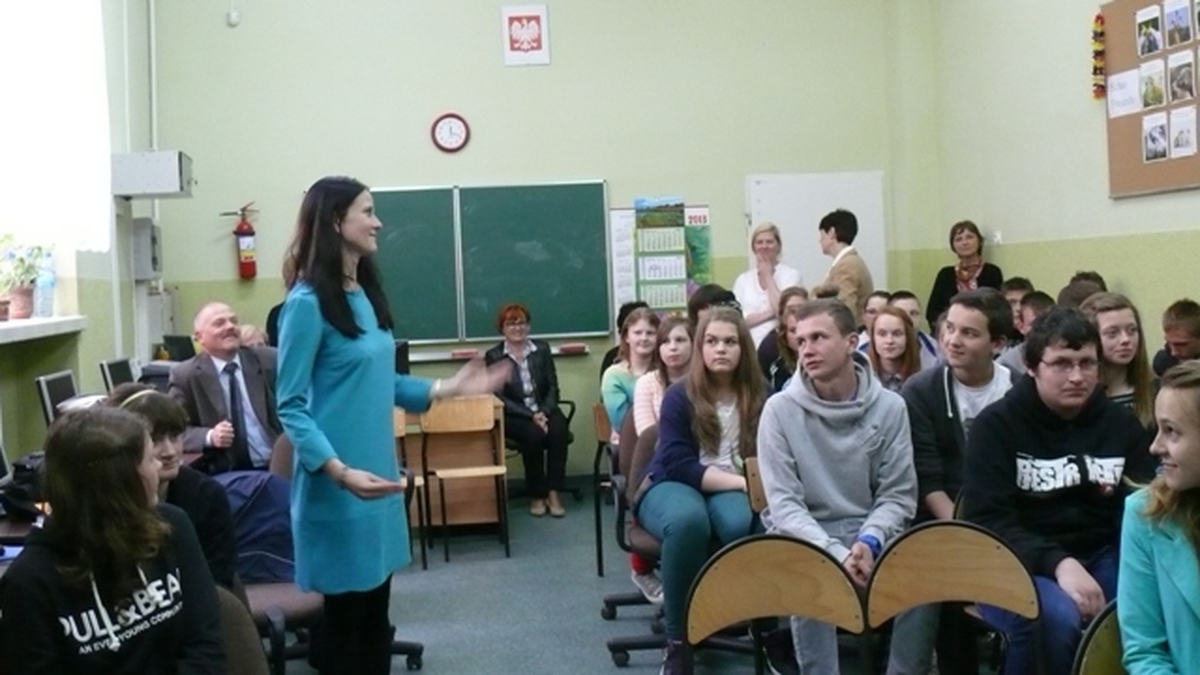 Absolwentka politologii Uniwersytetu Adama Mickiewicza w Poznaniu do Szkoły Podstawowej chodziła w Darłowie. Obecnie, w tym budynku jest Miejskie Gimnazjum. Spotkanie polegało głównie na zadawaniu pytań przez uczniów i nauczycieli oraz udzielaniu odpowiedzi przez dziennikarkę.