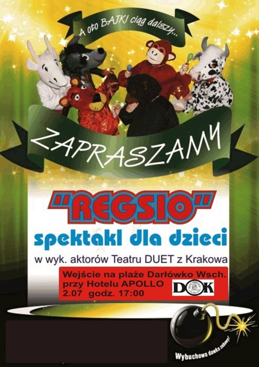 2 lipca, we wtorek o godz. 17:00 zapraszamy na plażę wschodnią, przy Hotelu Apollo na występ grupy teatralnej Duet z Krakowa.