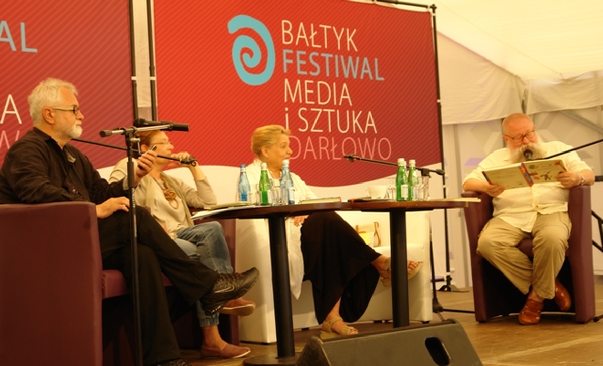Czwarty dzień Bałtyk Festiwalu Media i Sztuka rozpoczął się od Poranku Czytelniczego dla najmłodszych. Popis mistrzowskiego czytania wierszy dla dzieci dali: prof. Jerzy Bralczyk, Krystyna Czubówna, Anna Seniuk i Henryk Sawka. Zachęcone przez aktorkę dzieci także recytowały znane rymowanki. O pobycie w polskiej wsi Wierszyna na Syberii i urokach tej krainy opowiadał ks. Kazimierz Sowa. Po spotkaniu moderowanym przez Cezarego Łazarewicza ks. Kazimierz Sowa podpisywał książkę p.t. „Moja Syberia”. W tym samym czasie na plaży przy hotelu Apollo Mistrz Olimpijski Władysław Kozakiewicz razem z redaktorem sportowym Michałem Olszańskim oraz darłowskimi trenerami i sportowcami prezentowali ćwiczenia, które podnoszą mistrzowską kondycję i sprawność. Rozmowę z izraelskim politykiem, prof. nauk politycznych byłym przewodniczącym Knesetu i ambasadorem Izraela w Polsce Szewach Weissem przeprowadzili Jan Ordyński i Ewa Winnicka. Urodzony i ukrywający się w czasie II wojny światowej w Borysławiu Szewach Weiss obecnie jest przewodniczącym Rady Instytutu Pamięci Yad Vashem i prowadzi wykłady na temat historii oraz polityki w Uniwersytecie Warszawskim. Podczas kolejnego spotkania zatytułowanego „Od pornografa do ambasadora” Jarosław Gugała redaktor naczelny Wiadomości Polsatu mówił o najlepszym okresie dla Polski i Polaków, czyli o Trzeciej RP. Spotkanie prowadził Filip Łobodziński. Dalej Krystyna Czubówna – lektorka radiowa i telewizyjna czytała swoim pięknym głosem fragmenty książki białoruskiej pisarki i dziennikarki Swietłany Aleksijewicz p.t. „Wojna niema w sobie nic z kobiety”. „Zrozumieć kryzys” - to tytuł rozmowy Jana Wróbla z dziennikarzem i publicystą Gazety Wyborczej Jackiem Żakowskim. W swej książce p.t. „Zawał-zrozumieć kryzys”, autor dowodzi, że istniejący w Polsce kryzys, przed którym nie ostrzegano Polaków będzie się odbijał przez wiele lat na naszym poziomie życia. Benefis Krzysztofa Kowalewskiego p.t. „Kocham pana, panie Sułku” poprowadził Michał Ogórek. Wieczorem w kinie „Bajka” w spektaklu wg. poematu Stanisława Balińskiego „Oklaski, ach oklaski” wystąpiła Anna Seniuk razem z Magdaleną Małecką. Była to barwna poetycko-muzyczno opowieść o minionej przedwojennej epoce świata teatru i opery. W tym samym czasie w porcie w ramach cyklu „Rozwijamy region w dobrym tonie” koncertował smyczkowy Baltic Neopolis Quartet z zespołem Chorzy na Odrę. Wieczorem Wojciech Pszoniak czytał po raz drugi utwory Witolda Gombrowicza. Festiwal Bałtyk Media i Sztuka zakończył koncert zatytułowany „Kumple to grunt” w wykonaniu Zespołu Reprezentacyjnego założonego przez Jarosława Gugałę i Filipa Łobodzińskiego. Dzięki zespołowi lepiej poznaliśmy utwory Georges’a Brassensa. Trzeci Festiwal Bałtyk Media i Sztuka pokazał wczasowiczom i mieszkańcom Darłowa, że media stanowią nieodłączną część życia społecznego i kulturalnego. Dzięki festiwalowi poznaliśmy różnorodność świata kultury i sztuki prezentowaną przez jednych z najlepszych jej twórców. Te cztery dni festiwalu pełne spotkań, koncertów, wystaw i konkursów na długo pozostaną w pamięci licznych widzów i słuchaczy.