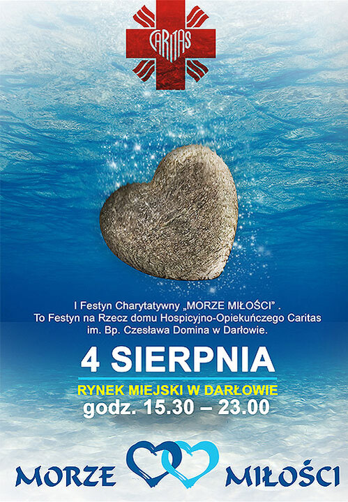 4 sierpnia na Rynku Miejskim, w godz. 15.30 – 23.00 odbędzie się I Festyn Charytatywny „MORZE MIŁOŚCI”. To Festyn na Rzecz domu Hospicyjno-Opiekuńczego Caritas im. Bp. Czesława Domina w Darłowie. Gwiazdą wieczoru będzie Andrzej Koziński Show z tancerzami Yoy Can Dance (laureat Debiutów 2013 na Festiwalu Disco Hit w Kobylnicy i Dawid Ignaczak – zwycięzca programu „Got to Dance Tylko Taniec”. Patronat medialny nad imprezą objęło Radio Koszalin. Patronami honorowymi są: Bp. Diecezji Koszalińsko Kołobrzeskiej Edward Dajczak, Dyrektor Caritas ks. Adam Wakulicz, Starosta Sławieński Wojciech Wiśniowski oraz burmistrz Darłowa Arkadiusz Klimowicz.