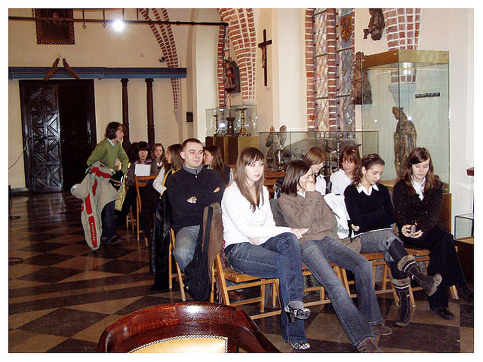 W Sali Rycerskiej darłowskiego Muzeum zamkowego odbyła się Młodzieżowa Sesja Historyczna dla uczniów szkół gimnazjalnych. Warto odnotować, iż możemy się poszczycić już 4 – letnią tradycją spotkań. Tym razem wysłuchaliśmy 8 wystąpień, które przygotowało 12 uczniów reprezentujących trzy gimnazja z powiatu sławieńskiego. Opracowania można by pogrupować w bloki tematyczne: wydarzenia i miejsca związane z okresem Średniowiecza i późniejszym, charakterystyka i ludzie PRL-u, wspomnienia starszego pokolenia. Uczniowskim referatom przysłuchiwała się komisja oceniająca, w składzie której znaleźli się: p. Leszek Walkiewicz (prezes Towarzystwa Przyjaciół Ziemi Darłowskiej, regionalista) – przewodniczący oraz Ewelina Bądyra i Agnieszka Rybka – panie odbywające staż zawodowy w dziale oświatowym Muzeum. Po wysłuchaniu gimnazjalistów jurorzy wysoko ocenili poziom uczniowskich referatów, podkreślając ich różnorodność tematyczną oraz atrakcyjne wykorzystanie środków audio – wizualnych. Na największe uznanie w ocenie komisji zasłużyły referaty: „Kościół w Bukowie” Marleny Kębłowskiej,Anny Gołębiewskiej i Pauliny Łysiak (Zespół Szkół w Dąbkach) oraz „Polska Rzeczpospolita Ludowa... Jaka to była Polska?” Agnieszki Kuziołek i Angeliki Misiura (ZS w Dąbkach). Obie prace były prezentacjami multimedialnymi, bogato ilustrowanymi i do tego uzupełnione wywiadami z mieszkańcami Ziemi Darłowskiej. Kolejne tematy opracowań uczniowskich - również bardzo ciekawe w formie i treści – to prace „Życie i działalność Bogusława X” autorstwa Magdaleny Charczuk i Marty Grywińskiej (Miejskie Gimnazjum nr 1 w Darłowie), „Kobiety w PRL-u” – Eweliny Fortuniak (ZS w Dąbkach) a także „Wspomnienia babci” Weroniki Banaś (ZS w Kopnicy). Z przyjemnością przysłuchiwaliśmy się referatowi Aleksandry Kozłowskiej (ZS w Kopnicy) o historii kościoła w Barzowicach i pracy Aleksandry Potomskiej (Miejskie Gimnazjum nr 1 w Darłowie) pt. „Opowieść o moich babciach”. Uczeń Miejskiego Gimnazjum nr 1 w Darłowie – Michał Gruba sugestywnie opowiedział o herbie Miasta Darłowa. Uczestników Młodzieżowej Sesji Historycznej przygotowali nauczyciele: Justyna Majchrzak (ZS w Kopnicy), Małgorzata Świątkowska (Miejskie Gimnazjum nr 1 w Darłowie) oraz Rafał Kosowski (ZS w Dąbkach). Organizatorem sesji był dział oświatowy Muzeum Zamek książąt Pomorskich w Darłowie. Zapraszamy na kolejne spotkanie w marcu 2008 roku.