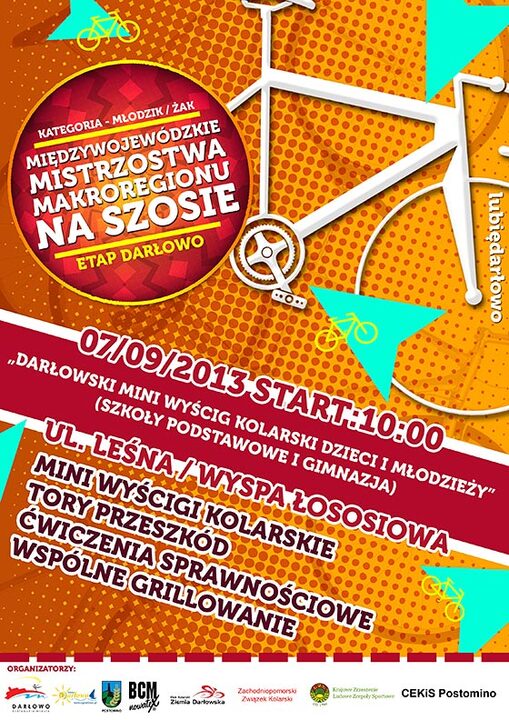 Klub Kolarski Ziemia Darłowska i Miasto Darłowo serdecznie zapraszają do wzięcia udziału w Darłowskich Mini Wyścigach Kolarskich Dzieci i Młodzieży. Impreza odbędzie się w najbliższą sobotę tj. 7 września 2013 roku w godzinach 13:00 - 15:30, na Wyspie Łososiowej w Darłowie. Przewidziano konkurencje zespołowe oraz indywidualne. W zespołowych, o tytuł najlepszej reprezentacji, konkurować będą ze sobą przedstawiciele darłowskich szkół - podstawowych i gimnazjalnych. W skład reprezentacji wchodzi 10 osób - 5 dziewczynek i 5-ciu chłopców. Natomiast do konkurencji indywidualnych przystąpić mogą zawodnicy, którzy ukończyli 6 rok życia. Tu rywalizować będą ze sobą na torze przeszkód oraz w rowerowych wyścigach indywidualnych. Ponadto organizatorzy przewidzieli wyścigi na gokartach dla dzieci w wieku 6-9 lat. Gokarty zapewnia organizator imprezy. Każdy zawodnik winien posiadać własny rower oraz kask. Na zakończenie poczęstunek dla wszystkich. Bądź aktywny. Przyjdź, wystartuj i zdobądź rower lub inne nagrody.