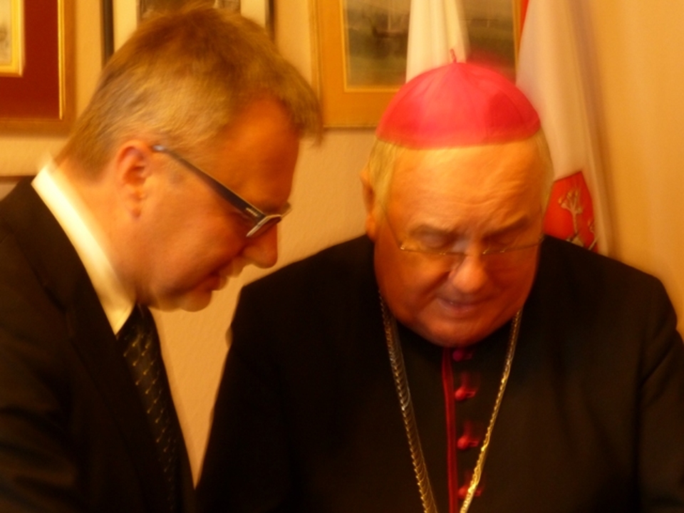 Burmistrz miasta Darłowa Arkadiusz Klimowicz gościł w ratuszu 4 listopada Biskupa Pomocniczego Diecezji Koszalińsko- Kołobrzeskiej Pawła Cieślika. Z tej okazji włodarz Darłowa wręczył JE medal wybity dla uświetnienia jubileuszu siedemsetlecia drugiej lokacji miasta. Oprócz wizyty w ratuszu Biskup odwiedził darłowskie szkoły, gdzie spotykał się z gronem pedagogicznym, dziećmi i młodzieżą. Biskup Paweł Cieślik urodził się w lipcu 1940 r. w Czernicach na ziemi złotowskiej. Święcenia kapłańskie przyjął 21 czerwca 1964 r. w rodzinnym Zakrzewie. W latach 1993-1994 był Rektorem Wyższego Seminarium Duchownego w Szczecinie. Biskupem został mianowany 3 grudnia 1994 i konsekrowany na biskupa 6 stycznia 1995 w Rzymie przez Ojca Świętego Jana Pawła II.