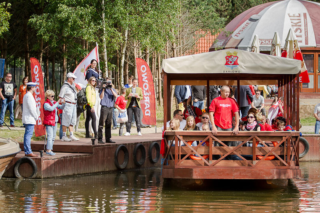 Na pomoście, przy którym na co dzień cumować będą jednostki odkryto pamiątkowe tablice miast: Darłowa i Ustki. Turyści, którzy będą zwiedzać, nową cześć Zoo Charlotta - bogatszego o takie zwierzęta jak m.in. strusie afrykańskie, emu, kangury, zebry itp. na początku rejsu zostaną powitani na pokładzie jednostek, po czym wysłuchają opowieści o mieście na pokładzie łódki, której zasiadają. W krótkim tekście promującym miasta usłyszą m.in. o tym dlaczego warto wybrać się do Darłowa i że jest to miasto królewskie a także o tym jaki pakiet atrakcji czeka na nich w Darłowie oddalonym o jedyne trzy kwadranse drogi od Magicznej Doliny Charlotty.