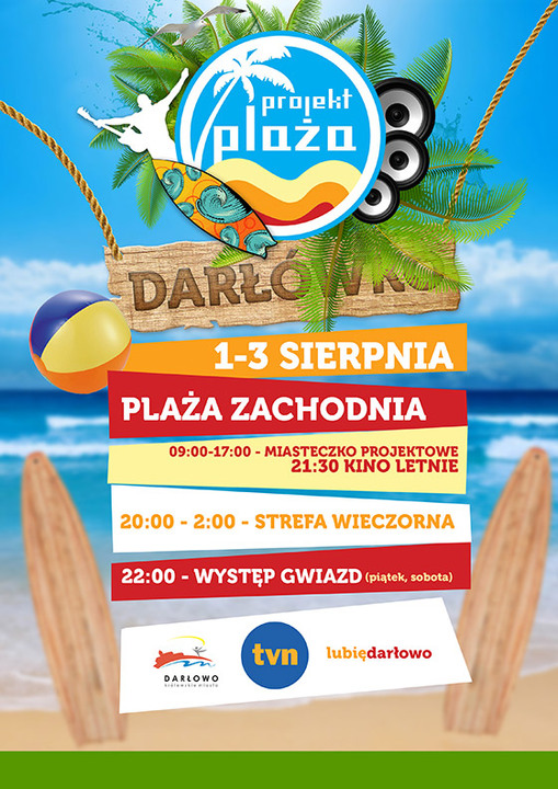 W ramach tegorocznej, wakacyjnej trasy Projektu Plaża, który podróżuje, już po raz szósty po Polskim Wybrzeżu Bałtyku - ekipa telewizji TVN odwiedzi również Darłowo. W dniach 1 - 3 sierpnia na plaży zachodniej w Darłówku powstanie miasteczko, a każdy kto je odwiedzi będzie mógł skorzystać z takich atrakcji jak: poranny jogging czy kino letnie. Ponadto organizatorzy przygotowali konkursy z nagrodami i rozgrywki sportowe. 1 i 2 sierpnia koncertowo, na plaży w Darłówku wystąpią: Sabina Jeszka i Marta Bijan - uczestniczki programu X FACTOR. Nie zabraknie również twarzy Projektu Plaża - Oliviera Janiaka oraz relacji na żywo z darłowskiej plaży w programie: Dzień Dobry Wakacje (emisja na antenie TVN 2 i 3 sierpnia) a także relacji z Darłowa w programie "Co za tydzień", który zostanie wyemitowany 10 sierpnia br.
