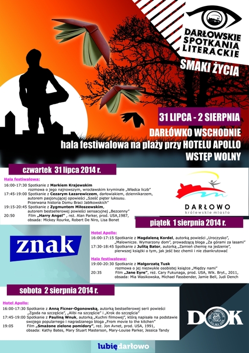 Gośćmi pierwszego dnia będzie między innymi, znany darłowiakom dziennikarz z Festiwalu Media i Sztuka - Cezary Łazarewicz - związany z „Gazetą Wyborczą”, „Przekrojem”, „Polityką” i „Newsweekiem”, obecnie "Wprost". Jego „Sześć pięter luksusu to przerwana historia Domu Braci Jabłkowskich”, pasjonująca historia kamienicy, o której mówiła przedwojenna Europa.