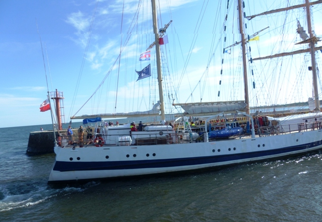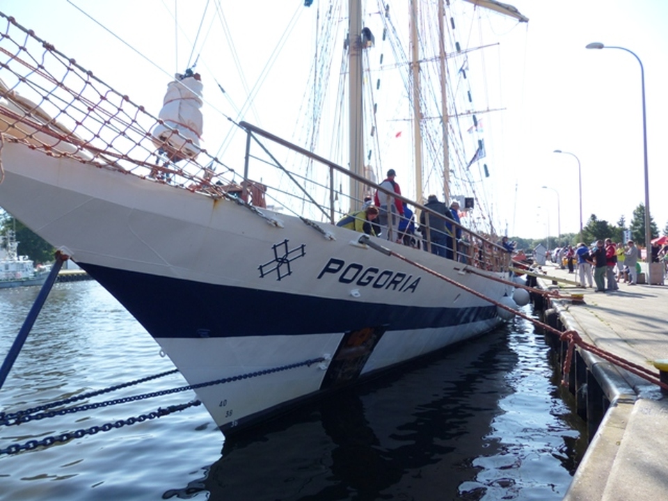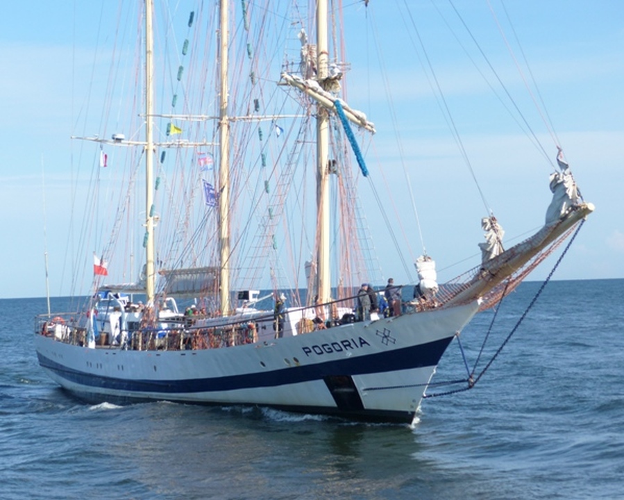 W Darłowie żaglowiec będzie udostępniony dla zwiedzających w godzinach od 12 do 16. STS Pogoria - stalowa, trójmasztowa barkentyna zbudowana w 1980 r. w Stoczni Gdańskiej im. W. Lenina. Ma wymiary: dł. całkowita 46,8m, szerokośc 8 m, wys. 33,5 m, powierzchnia ozaglowania 909 m kw., załoga 7+46 osób. Pogoria jest malowana na biało z szerokim niebieskim pasem. Barkentyna jest pierwszym dużym żaglowcem zaprojektowanym przez polskiego konstruktora statków - inż. Zygmunta Chorenia i stanowiła pierwowzór dla kilku podobnych jednostek, w budowie których polskie stocznie później się wyspecjalizowały. Były to: Pogoria, Iskra i bułgarska Kaliakra, a nieco później Oceania. Pogoria powstała na zamówienie Telewizji Polskiej dla Bractwa Żelaznej Szekli. Bractwo powstało z inicjatywy kpt. Adama Jassera w 1971 r. i dorobiło się z czasem własnej audycji w TV pod nazwą Latający Holender prowadzonej przez kpt. Krzysztofa Baranowskiego, pierwszym kapitanem "Pogorii" został były kpt. "Iskry" kmdr por. Piotr Bigaj, który następnie oddał dowództwo Krzysztofowi Baranowskiemu. Znaki przypominające krzyże, które przez wiele lat nosiła Pogoria na żaglach rejowych, to cztery skrzyżowane szekle, symbol Bractwa. Debiut Pogorii w regatach Cutty Sark miał miejsce na trasie wyścigu Mon-Karlskrona. Żaglowiec pierwszy minął linię mety, pozostawiając inne jednostki klasy A daleko z tyłu. Zwycięstwo to było bardzo cenne, gdyż "Pogoria" od momentu powstania wzbudzała wiele emocji. Żaglowiec „Pogoria wypłynie z Darłowa w dalszy rejs około godz. 20.