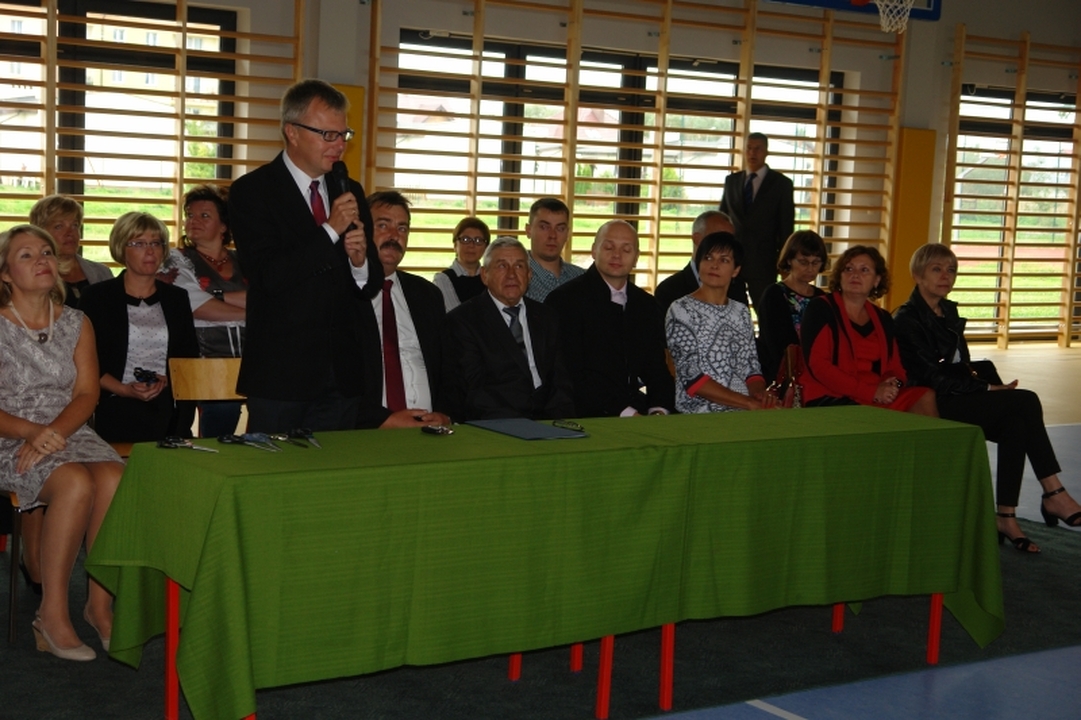 W naszym darłowskim środowisku uroczyste rozpoczęcie roku szkolnego 2014/2015 odbyło się z udziałem Burmistrza Miasta Arkadiusza Klimowicza, Przewodniczącego Rady Miejskiej Zbigniewa Grosza i kierownika referatu Oświaty i Spraw Społecznych Zbigniewa Mielczarskiego. Inauguracja roku szkolnego w Zespole Szkół im. S. Żeromskiego miała o tyle odświętny charakter, że połączona była z oddaniem nowej hali sportowej.