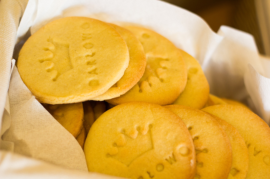 Jak na królewskie ciasteczko przystało - jego kształt przypomina denara z wytłoczoną pośrodku królewską koroną i napisem - Darłowo (miejsce pochodzenia).