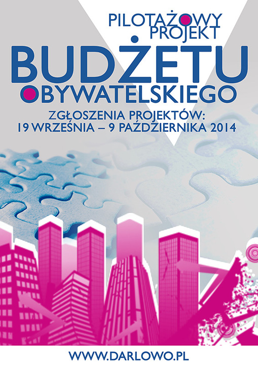 Każdy, kto chce i ma ciekawy pomysł na działanie, zmianę, inwestycję czy remont w swojej okolicy, może zgłosić swój projekt do 9 października br. Na Darłowski Budżet Obywatelski przeznaczone jest 100 tysięcy zł. Koszt jednego projektu nie może przekroczyć 20 tysięcy. W ramach budżetu obywatelskiego mogą być realizowane projekty inwestycyjne, społeczne czy kulturalne - ważne by mieściły się w zadaniach własnych miasta. Wszystkie potrzebne informacje dotyczące pilotażowego Budżetu Obywatelskiego w Darłowie dostępne są na stronie www.budzet.darlowo.pl