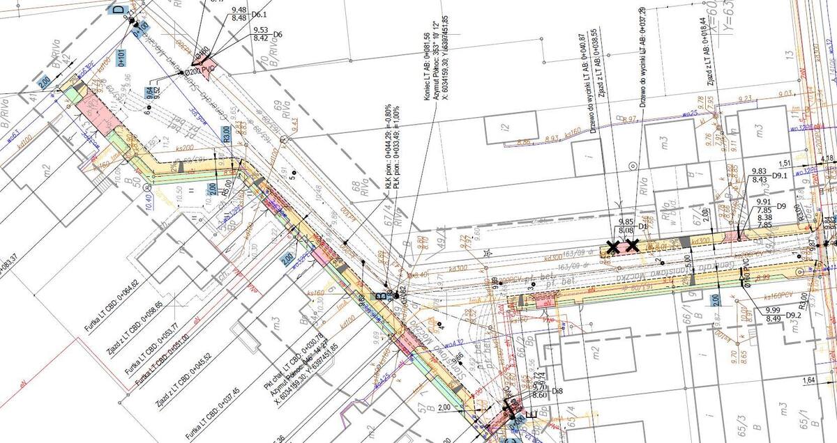 Nawierzchnia chodników wykonana zostanie z szarej kostki betonowej o wymiarach 10x20x8 cm, zaś nawierzchnia zjazdów - z czerwonej kostki betonowej.