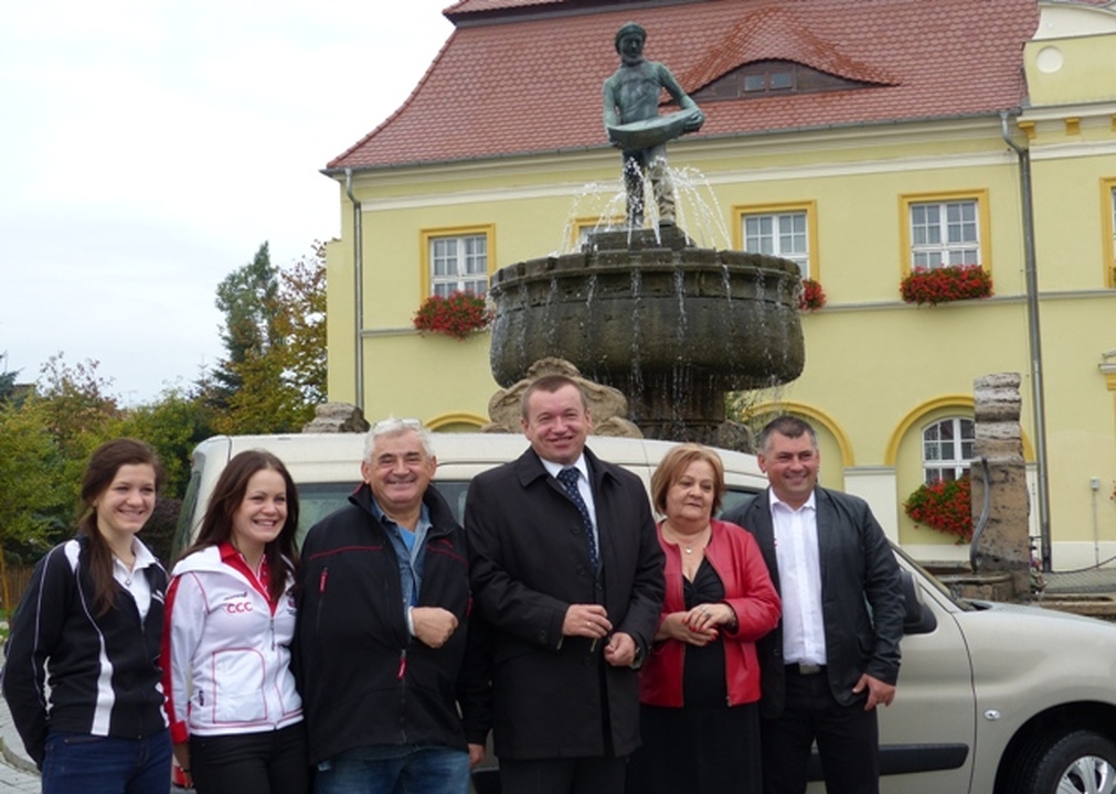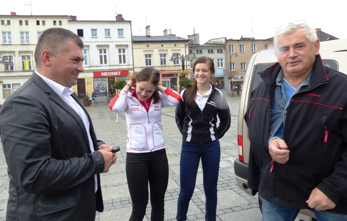 Członek Zarządu Województwa Zachodniopomorskiego Jarosław Rzepa i wiceburmistrz Darłowa Elżbieta Karlińska przekazali kluczyki wraz z samochodem prezesowi Klubu Kolarskiego Ziemia Darłowska Eugeniuszowi Adamowowi. Jest to wielce potrzebny środek transportu dla kolarek często wyjeżdżających na zawody sportowe. W uroczystości przekazania samochodu oprócz prezesa Klubu Kolarskiego BCM Nowatex Ziemia Darłowska udział wzięli trener Marcin Adamów i zawodniczki siostry Daria i Wiktoria Pikulik. W imieniu wszystkich prezes klubu gorąco dziękował za użyteczny dar i przekazał kluczyki trenerowi.