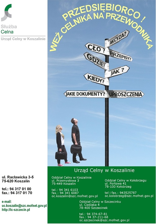 Wspierając aktywność gospodarczą podmiotów, zachęcamy do skorzystania z usług jednostek organizacyjnych Służby Celnej w Koszalinie, zapewniając o profesjonalizmie funkcjonariuszy pełniących tam służbę.