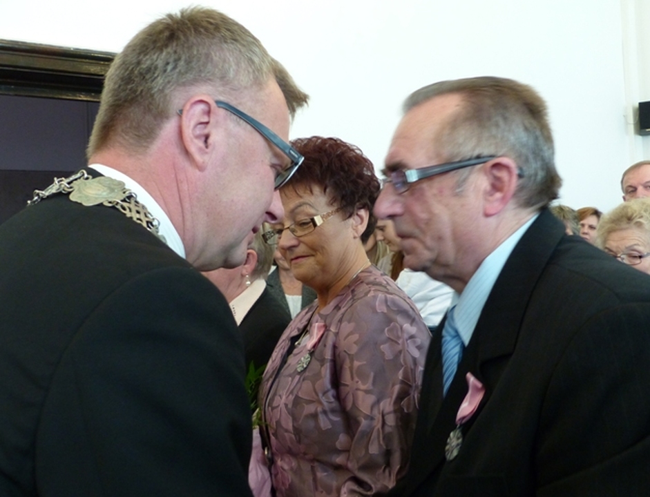 Na początku obrad 57. Sesji Rady Miejskiej w ratuszu Arkadiusz Klimowicz – burmistrz Darłowa uhonorował trzy pary małżeńskie Medalami Za Długoletnie Pożycie Małżeńskie. Otrzymali je: Janina i Franciszek Grykień, Anna i Ryszard Lendo.