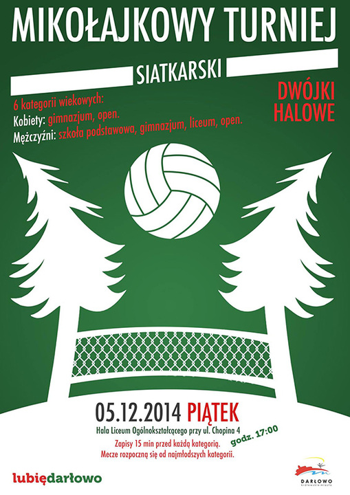 Miasto Darłowo zaprasza do udziału w Mikołajkowym Turnieju Siatkarskim halowych dwójek. Rozgrywki w 6 kategoriach wiekowych tj.: