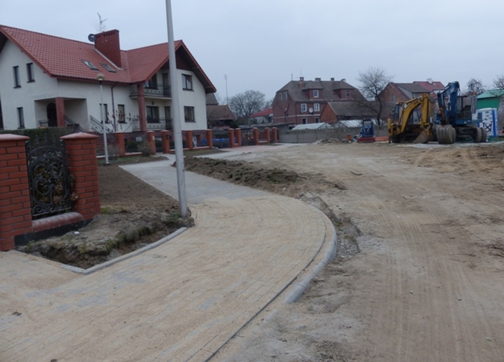 Na zdjęciach chodnik perzyn ul. Gen St. Maczka i plac zabaw w budowie