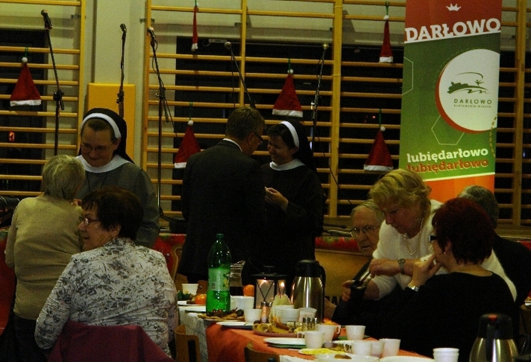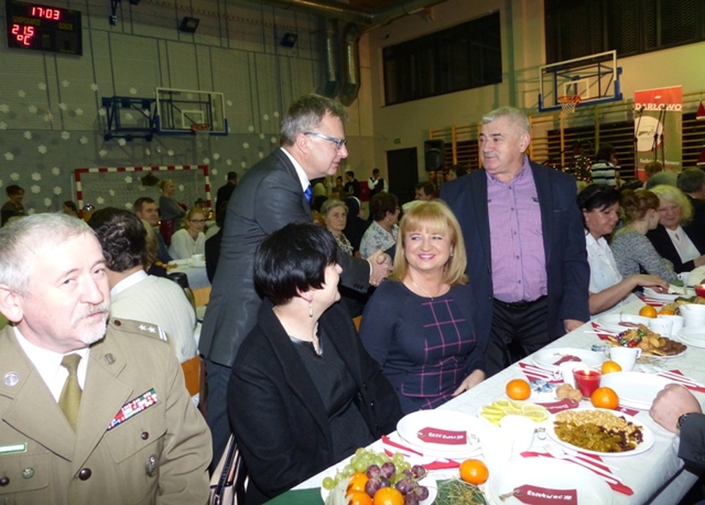 W miniony poniedziałek 22 grudnia w sali sportowej Zespołu Szkół im. S. Żeromskiego odbyła się ogólnomiejska wigilia zorganizowana przez burmistrza Darłowa Arkadiusza Klimowicza.