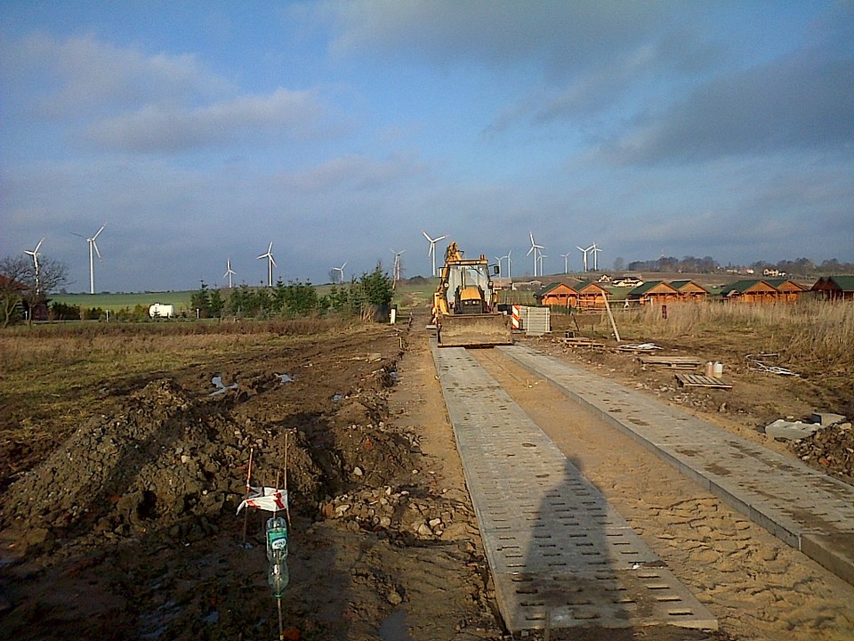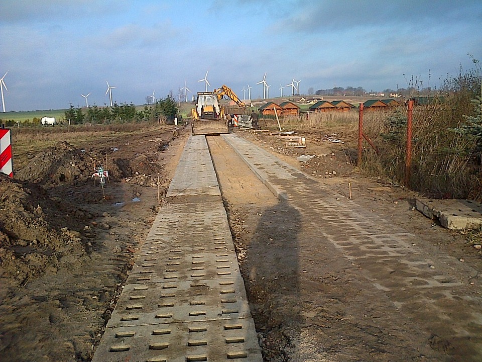 Początkowo wykonano drogę z płyt jomb wraz z odwodnieniem od ul. o. Damiana Tynieckiego do Hospicjum. W czwartym kwartale 2014 przedłużono ulicę Wiejską od Hospicjum w kierunku morza o 82 mb. Jednocześnie na odcinku 160 mb wykonano kanalizację deszczową odwadniającą teren przebudowywanej drogi ul. Wiejskiej w Darłowie Zbudowało ją kosztem 132 tys. zł Przedsiębiorstwo Instalacji Przemysłowych i Sanitarnych Cesta ze Słupska, które wygrało przetarg nieograniczony. Natomiast odcinek drogi z płyt jomb wykonał Zakład Inżynieryjno – Budowlany inż. Franciszka Dorosińskiego kosztem 30 tys. zł