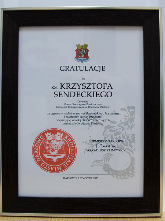 Za ogromny wkład w rozwój darłowskiego hospicjum