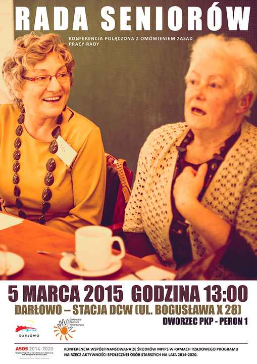Miasto Darłowo i Darłowskie Centrum Wolontariatu zapraszają w dniu 5 marca 2015 roku (czwartek) do nowej siedziby DCW - Stacji DCW (ul. Bogusława X 28 - Dworzec PKP), na konferencję połączoną z omówieniem zasad pracy tworzącej się w Darłowie Rady Seniorów.