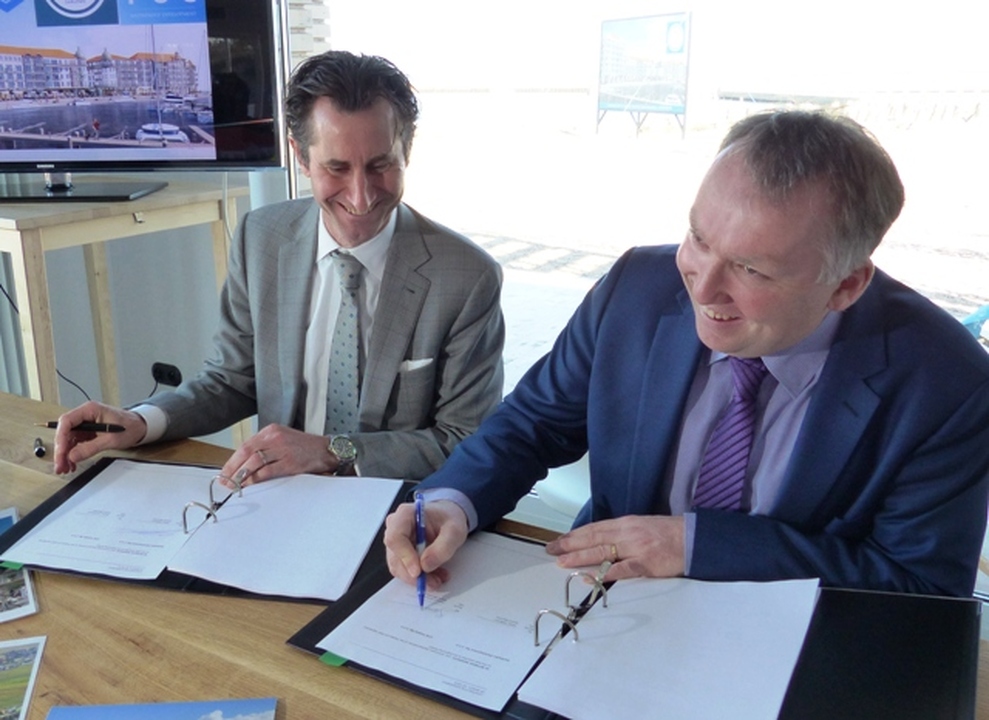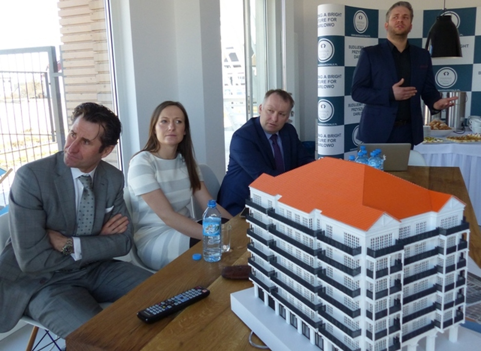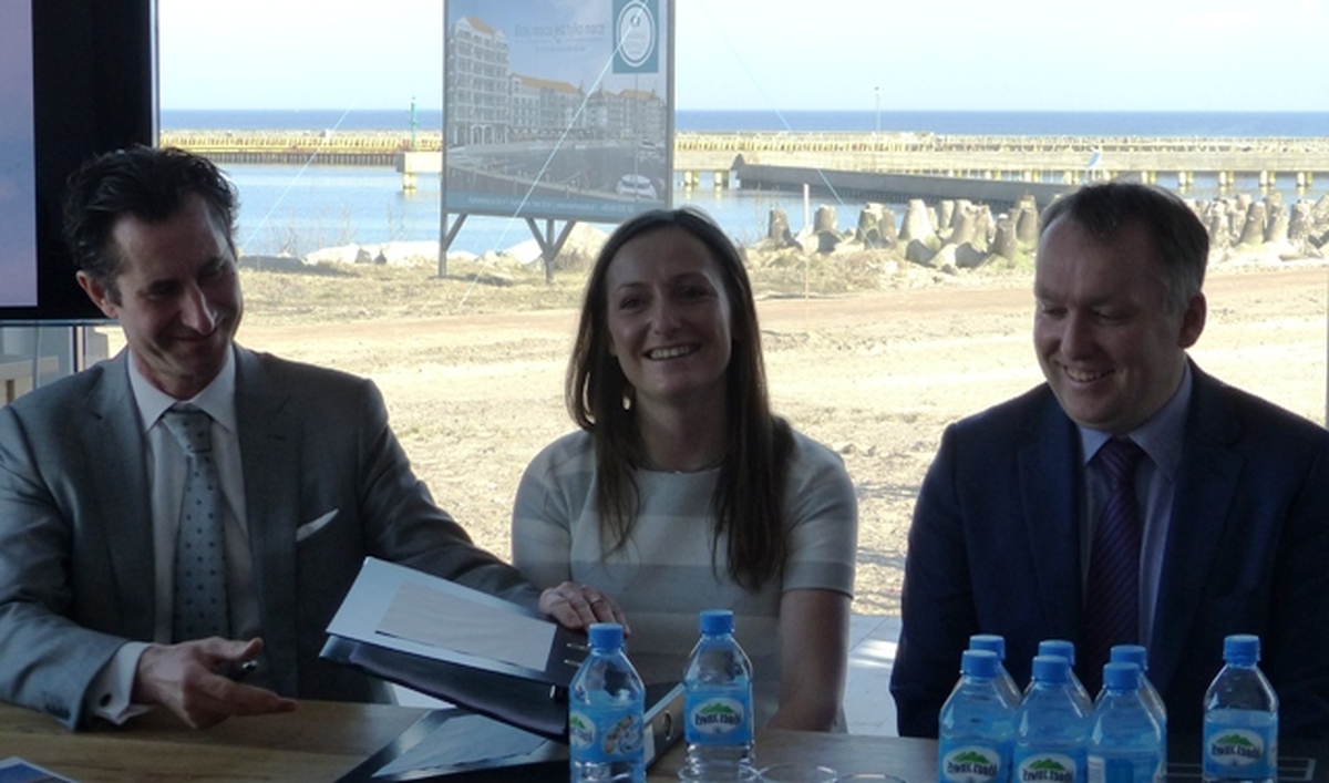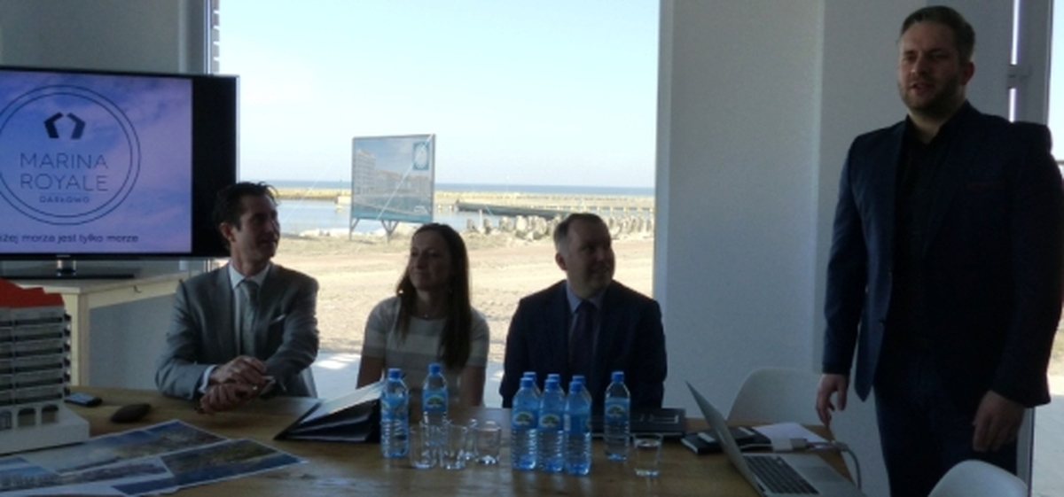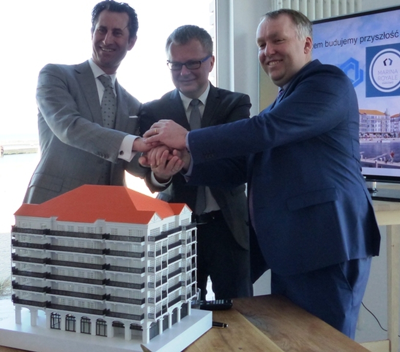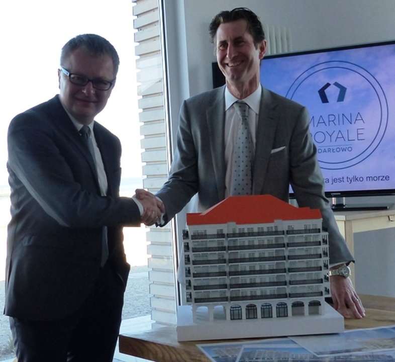 Z udziałem starosty sławieńskiego Wojciecha Wiśniowskiego i burmistrza Darłowa Arkadiusza Klimowicza w siedzibie belgijskiej firmy POC Partners i jej polskiej spółki w Darłówku Zachodnim podpisano umowę na wybudowanie pierwszego z trzech zaplanowanych budynków z apartamentami. Przybyłych powitał Wojciech Konferowicz, który zaprezentował firmę i jej plany związane z Darłowem na najbliższe kilka lat. Firma zakłada wybudowanie w trzech zazębiających się etapach 300 luksusowych apartamentów w trzech budynkach. Powstaną one na 1,5 hektarowej działce nad samym morzem w Darłówku Zach., nadmorskiej dzielnicy Darłowa. Pierwszy ze wznoszonych siedmiokondygnacyjny budynek będzie miał 68 apartamentów o powierzchni od 27 do 84 metrów kw. w cenie od 12 do 24 tys. za metr kw. netto. Każdy apartament będzie miał, co najmniej jeden balkon i miejsce do parkowania w dwukondygnacyjnym podziemnym garażu z windami samochodowymi. Na dzisiejszej konferencji prasowej w Darłówku firma POC Partners Polska oficjalnie zainaugurowała budowę kompleksu Marina Royale Darłowo położonej w super atrakcyjnym miejscu u wejścia do portu. W skład kompleksu Mariny Royale wejdą: duża restauracja, basen, SPA, parking podziemny, sklepy, butiki, kawiarnie, promenada spacerowa oraz nabrzeża do cumowania jachtów morskich o zanurzeniu do 3,5 metra. Marina Royale została zaprojektowana przez pracownię architektoniczną Arcas Europe, specjalizującą się w projektowaniu zabudowy mieszkaniowej i wypoczynkowej. Projekt nawiązuje swoim charakterem do przedwojennych nadmorskich kamienic i klimatu riwiery. Zależy nam na tym, by wszystko, co zbudujemy, było najwyższej jakości, by tworzyło nowy standard podkreślał dyrektor Peter Taffeiren. POC Partners Polska Spółka z o.o. zamierza zainwestować w Darłowie 200 milionów złotych. Na czas sezonu letniego roboty budowlane będą wstrzymane, aby nie zakłócać wypoczynku wczasowiczom i turystom. Na rozpoczęcie budowy Arkadiusz Klimowicz burmistrz Darłowa przekazał na ręce Petera Taffeirena -dyrektora generalnego firmy POC Partners kielnię z herbem Darłowa i list gratulacyjny.