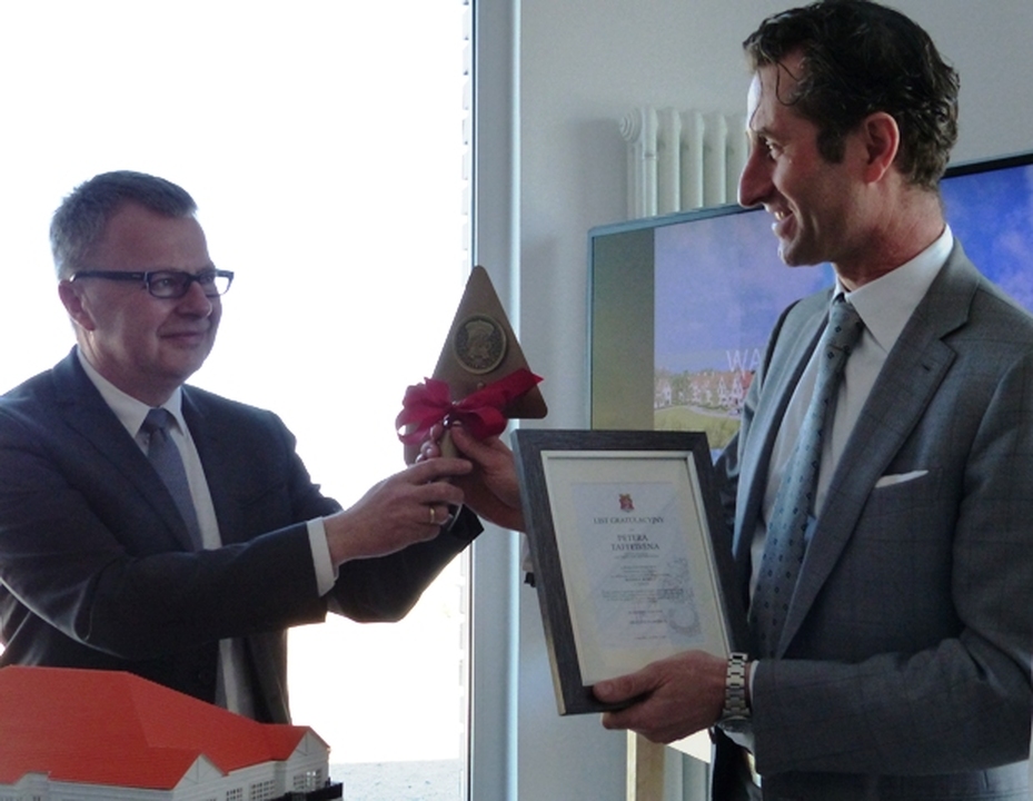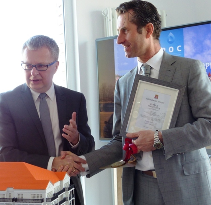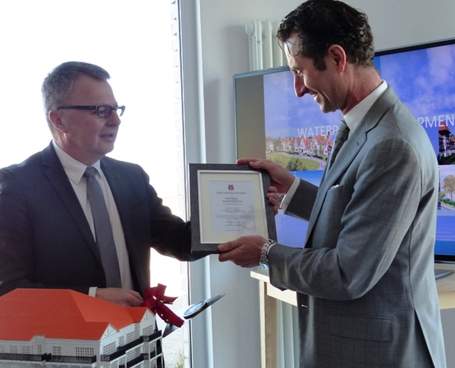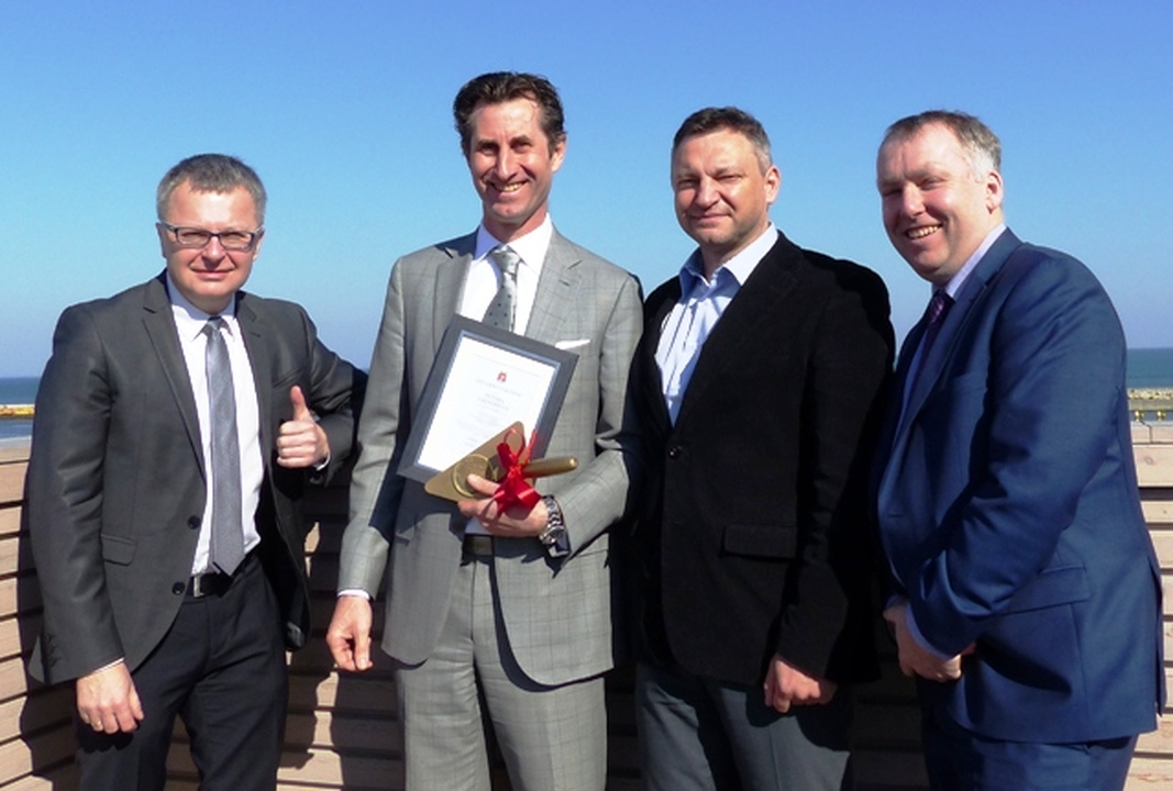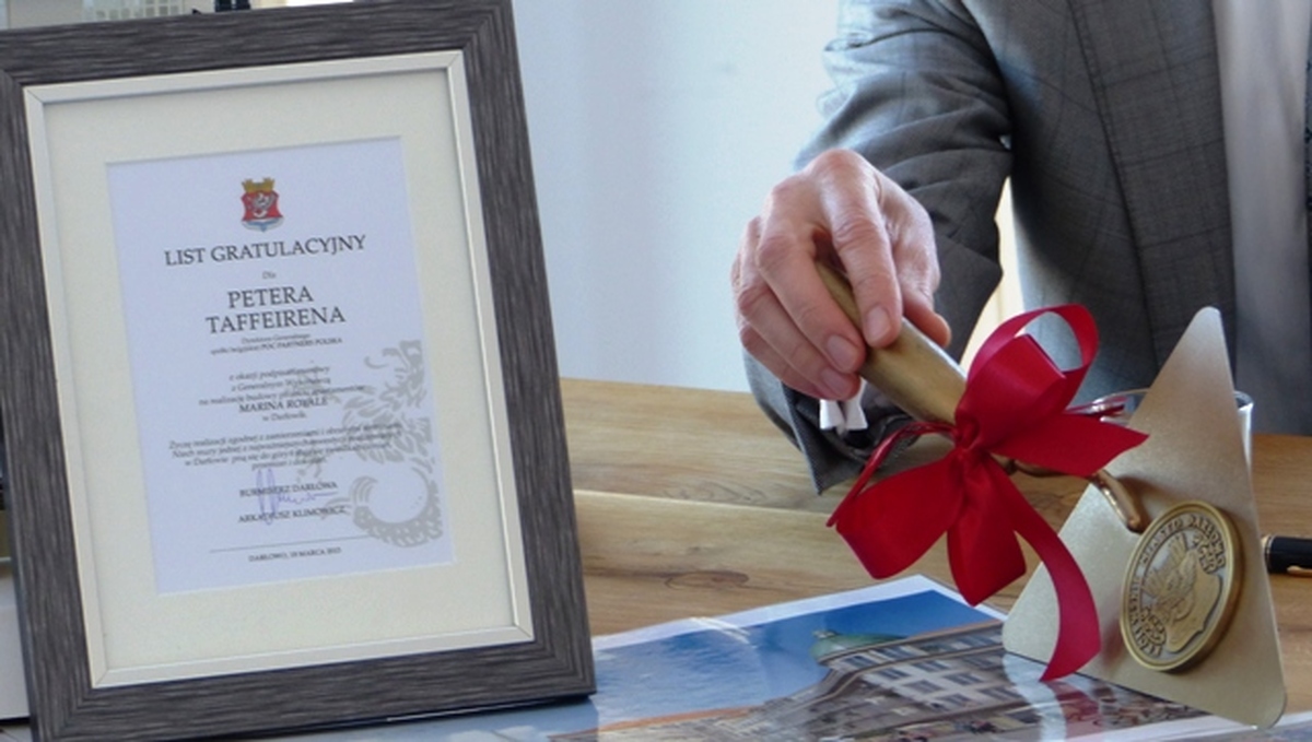 Z udziałem starosty sławieńskiego Wojciecha Wiśniowskiego i burmistrza Darłowa Arkadiusza Klimowicza w siedzibie belgijskiej firmy POC Partners i jej polskiej spółki w Darłówku Zachodnim podpisano umowę na wybudowanie pierwszego z trzech zaplanowanych budynków z apartamentami. Przybyłych powitał Wojciech Konferowicz, który zaprezentował firmę i jej plany związane z Darłowem na najbliższe kilka lat. Firma zakłada wybudowanie w trzech zazębiających się etapach 300 luksusowych apartamentów w trzech budynkach. Powstaną one na 1,5 hektarowej działce nad samym morzem w Darłówku Zach., nadmorskiej dzielnicy Darłowa. Pierwszy ze wznoszonych siedmiokondygnacyjny budynek będzie miał 68 apartamentów o powierzchni od 27 do 84 metrów kw. w cenie od 12 do 24 tys. za metr kw. netto. Każdy apartament będzie miał, co najmniej jeden balkon i miejsce do parkowania w dwukondygnacyjnym podziemnym garażu z windami samochodowymi. Na dzisiejszej konferencji prasowej w Darłówku firma POC Partners Polska oficjalnie zainaugurowała budowę kompleksu Marina Royale Darłowo położonej w super atrakcyjnym miejscu u wejścia do portu. W skład kompleksu Mariny Royale wejdą: duża restauracja, basen, SPA, parking podziemny, sklepy, butiki, kawiarnie, promenada spacerowa oraz nabrzeża do cumowania jachtów morskich o zanurzeniu do 3,5 metra. Marina Royale została zaprojektowana przez pracownię architektoniczną Arcas Europe, specjalizującą się w projektowaniu zabudowy mieszkaniowej i wypoczynkowej. Projekt nawiązuje swoim charakterem do przedwojennych nadmorskich kamienic i klimatu riwiery. Zależy nam na tym, by wszystko, co zbudujemy, było najwyższej jakości, by tworzyło nowy standard podkreślał dyrektor Peter Taffeiren. POC Partners Polska Spółka z o.o. zamierza zainwestować w Darłowie 200 milionów złotych. Na czas sezonu letniego roboty budowlane będą wstrzymane, aby nie zakłócać wypoczynku wczasowiczom i turystom. Na rozpoczęcie budowy Arkadiusz Klimowicz burmistrz Darłowa przekazał na ręce Petera Taffeirena -dyrektora generalnego firmy POC Partners kielnię z herbem Darłowa i list gratulacyjny.