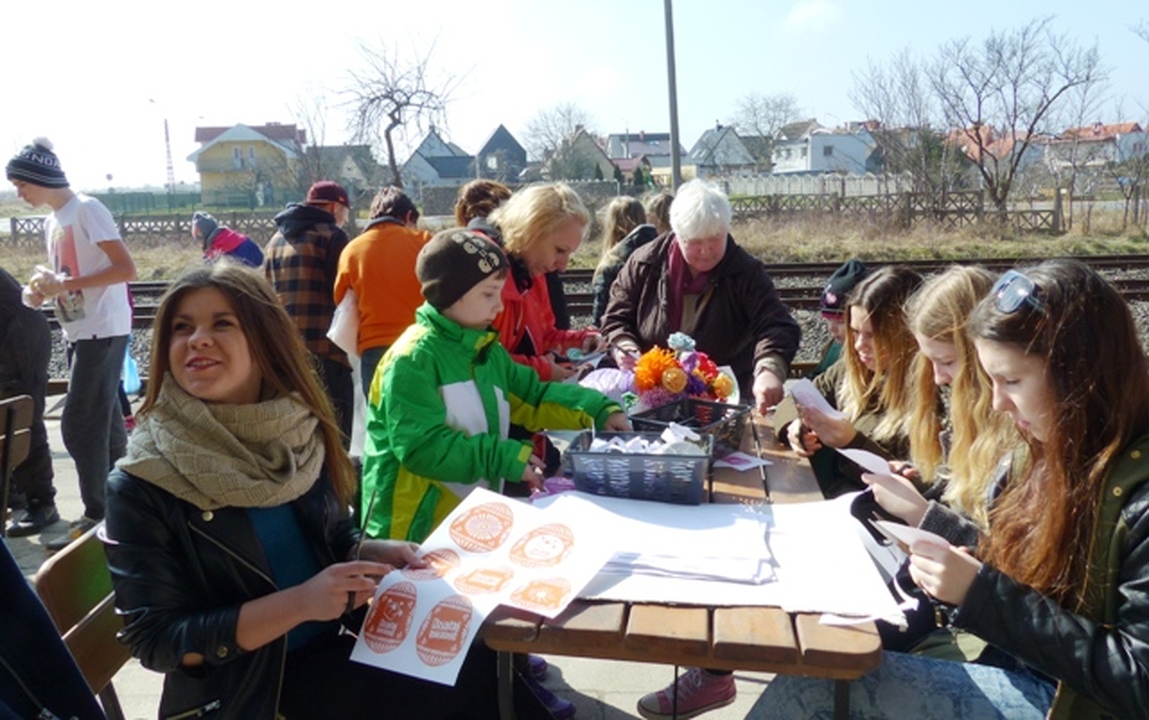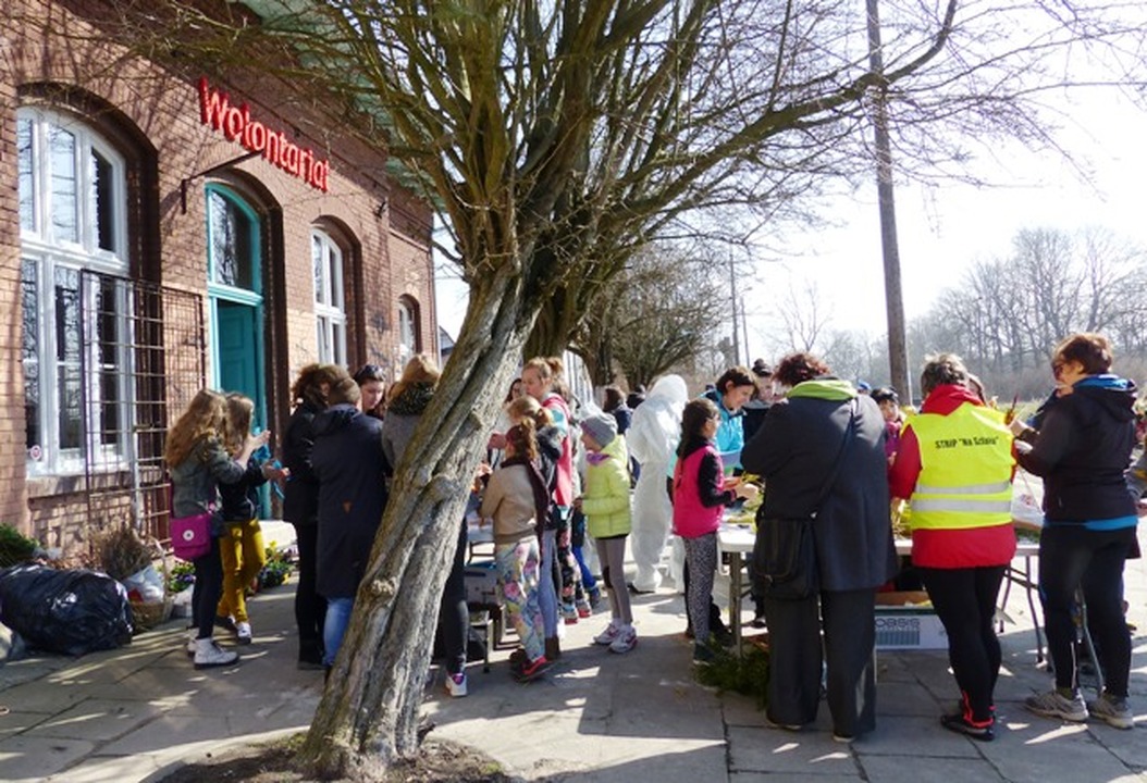 W przeddzień Niedzieli Palmowej 28 marca przez kilka godzin popołudniowych wokół dworca kolejowego wrzało jak w ulu. To kolejna bardzo pożyteczna akcja Darłowskiego Centrum Wolontariatu pod nazwą „Parapetówka na Stacji DCW”, czyli wiosenny happening dla całych rodzin. W spotkaniu przy pięknej pogodzie wzięło udział blisko setka wolontariuszy, turystów rowerowych i mieszkańców Darłowa. Parapetówka była wiosennym porządkowaniem otoczenia nowej siedziby DCW poprzez czyn społeczny. Był to też dzień otwarty, dzięki któremu każdy zainteresowany mieszkaniec Darłowa i regionu miał okazję zobaczyć odrestaurowaną część byłego dworca PKP w Darłowie, poznać wolontariuszy, kierunki ich działań, osiągnięcia i pakiet aktualnie realizowanych projektów. Dorota Kuriata – prezes Darłowskiego Centrum Wolontariatu podzieliła licznie przybyłych wolontariuszy na drużyny i przydzieliła im zadania do wykonania. Poszczególne brygady sprzątały, bieliły drzewa, malowały słupki, lampy, kwietniki, donice i pas wzdłuż peronu. Inne kopały ziemię i sadziły bratki, robiły palmy i świąteczne stroiki. Na koniec zajadano pyszne ciasta i smaczne kiełbaski z grilla popijając kawą i herbatą. W ten sposób dworzec nabrał nowego blasku i może już przyjmować regionalny szynobus. To także był znakomity pożyteczny pomysł spędzenia kilku godzin w sposób aktywny.