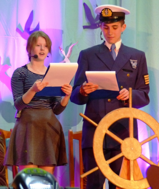 W części artystycznej zatytułowanej Złotą Muszlą w piękny rejs…wystąpili: grupa taneczno – wokalna Studia REVOLTADE z DOK-u, Karolina Chimko i Jan Schwarzlose. Oprawę muzyczną i choreografię przygotowali Karolina i Dariusz Chimko -kierownik studia Revoltade.
