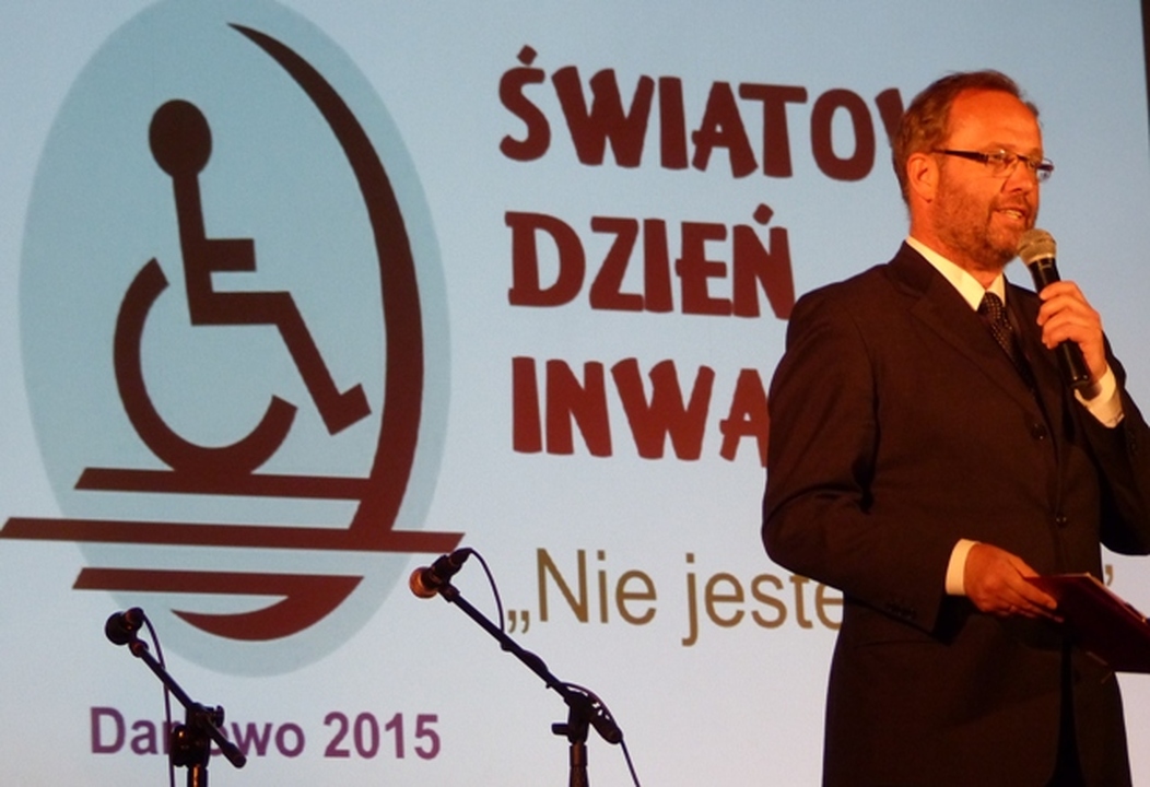 Ten szczególny dzień przypomniał społeczeństwu, że inwalidzi i niepełnosprawni są jego integralną częścią. W uroczystym spotkaniu wzięli udział m.in.: Arkadiusz Klimowicz – burmistrz Darłowa, dyrektor Powiatowego Centrum Pomocy Rodzinie- Małgorzata Maciuk Radawiec, kierownik MOPS – Waldemar Wieczorek, Elżbieta Betlińska z klubu Amazonek, emeryci, inwalidzi i osoby niepełnosprawne. Przybyłych powitała i w skrócie scharakteryzowała działalność PZERiI na rzecz osób niepełnosprawnych Danuta Puczyńska – przewodnicząca związku. Również o działaniach na rzecz inwalidów i osób niepełnosprawnych mówili kierownik MOPS-u i inni. Serdeczne życzenia wszystkim niepełnosprawnym i inwalidom złożył burmistrz Darłowa i zapewnił ich o dalszym wspieraniu i likwidowaniu architektonicznych barier. W części artystycznej wystąpili m.in: Chór SP nr 3, dzieci ze świetlicy „Bezpieczna Przystań”, „Niezapominajki”, niepełnosprawny mistrz Europy Maciej Sochal, wokalistka Dominika Grylewicz, Domasławianie, poetka Waleria Kaczkowska, niewidoma śpiewaczka Bogusława Tałanda, zespół Sprawne Babunie. Nieoceniony Jan Schwarzlose akompaniował solistce, „Niezapominajkom” i „Sprawnym Babuniom”. Uroczystość perfekcyjnie poprowadził dyrektor DOK-u Arkadiusz Sip. W holu kina zorganizowano okolicznościową wystawę malarstwa i rysunku, działającej przy DOK-u grupy plastycznej „Dziupla”, Maksymiliana Klekociuka i Dziennego Ośrodka Rehabilitacyjno – Terapeutycznego.