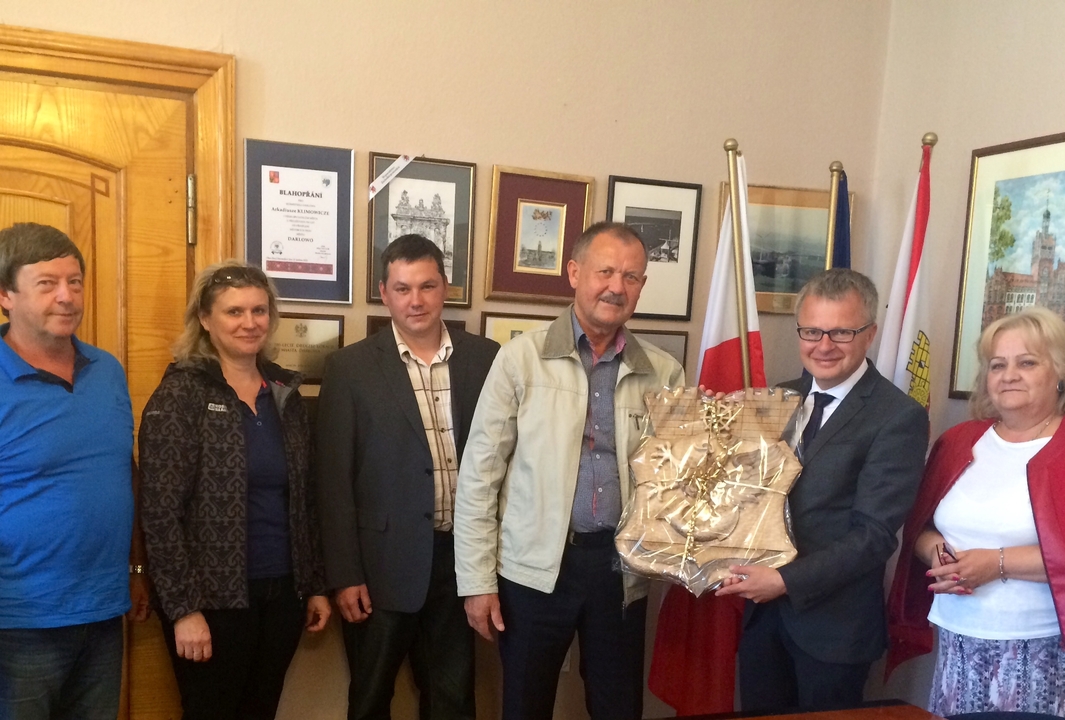 Z krótką wizytą przebywają w Darłowie samorządowcy ze Starego Hrozenkowa na Morawach w Republice Czeskiej. Na czele delegacji stoi starosta (odpowiednik burmistrza) Milan Vaculik. Goście z naszej partnerskiej gminy przywieźli w prezencie herb Darłowa wyrzeźbiony w drewnie lipowym przez lokalnego artystę. W trakcie wizyty zostaną ustalone tegoroczne zasady wakacyjnej wymiany mieszkańców. W połowie lipca kilkudziesięcioosobowa grupa darłowiaków będzie wypoczywać w Starym Hrozenkowie a Morawiacy w tym samym czasie skorzystają z letnich atrakcji Darłowa.