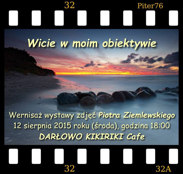 Piotr Ziemlewski i Kikiriki Cafe zapraszają na kolejny tego lata wernisaż fotograficzny pn.: „Wicie w moim obiektywie", który odbędzie się w środę 12 sierpnia w kawiarni przy miejskim deptaku (Darłowo - ul. Powstańców Warszawskich). Początek - godz. 18:00. Wstęp wolny. Zapraszamy.