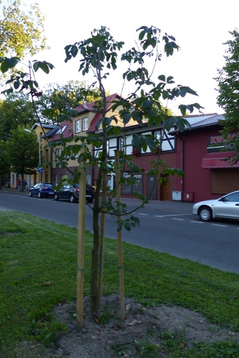 W ubiegłym tygodniu w Darłowie przy al. Wojska Polskiego miasto zmuszone było wyciąć cztery stare kasztanowce w oparciu o opinię dendrologa. Drzewa posiadały liczne, dziuple i wypróchnienia. Ponadto były zainfekowane grzybami pasożytniczymi. Kasztanowce były też pochylone w kierunku ruchu pieszego j jezdni grożąc przechodniom i kierowcom zawaleniem i zniszczeniami pojazdów. Równocześnie w to miejsce posadzono cztery młode kasztanowce kwitnące różowo. Miasto będzie sukcesywnie nasadzać nowe kasztanowce różowe by Plac Marszałka Piłsudskiego zawsze był otoczony tymi pięknymi drzewami.