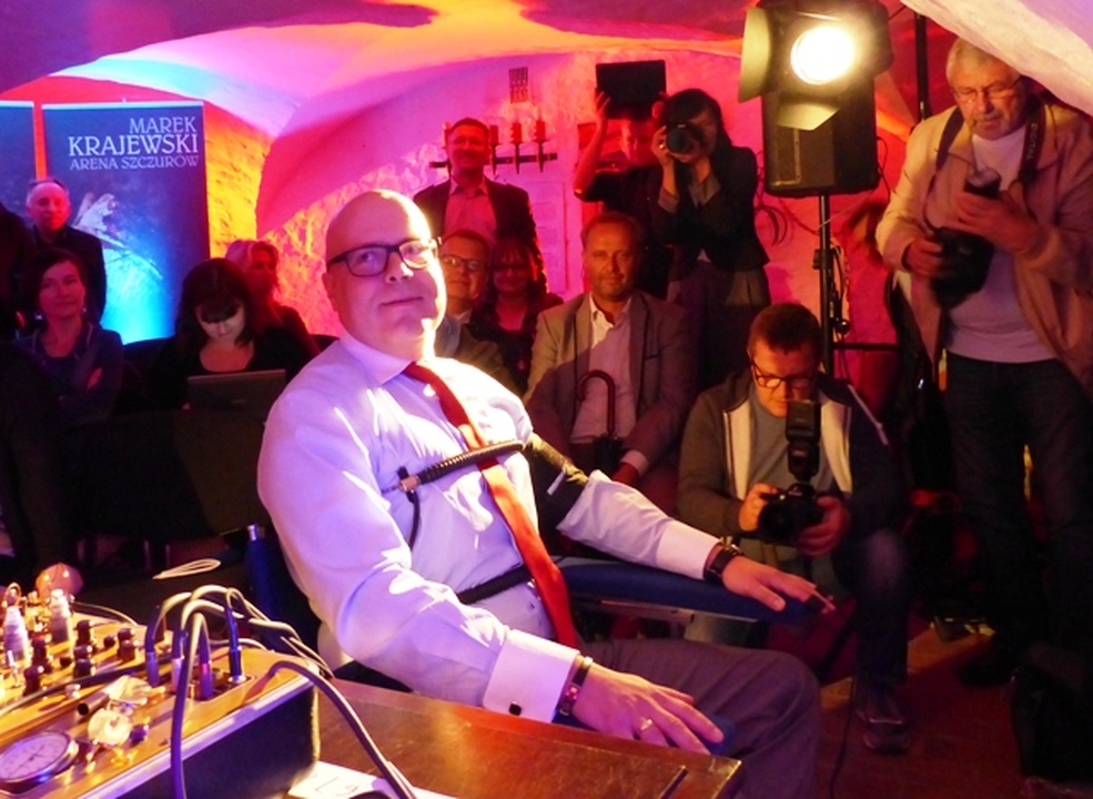 W poniedziałek 21 września 2015 w piwnicach Zamku Książąt Pomorskich w Darłowie odbyła się prapremiera najnowszej powieści kryminalnej Marka Krajewskiego pt. „Arena szczurów”. Pierwsze spotkanie z dziennikarzami zostało połączone z badaniem autora kryminałów za pomocą wariografu, a drugie autorskie odbyło się z Czytelnikami.
